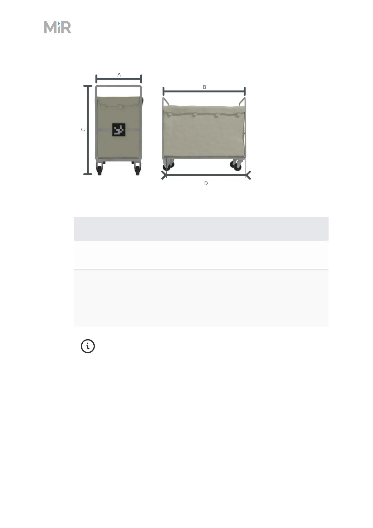 C Cart height: maximum 1800 mm D Locked wheels offset: the