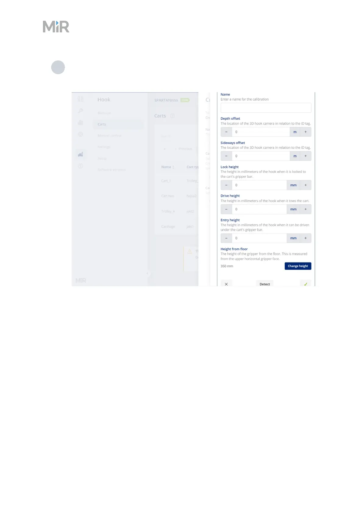 when you select Detect and MiR250 Hook is correctly positioned to read the ID tag