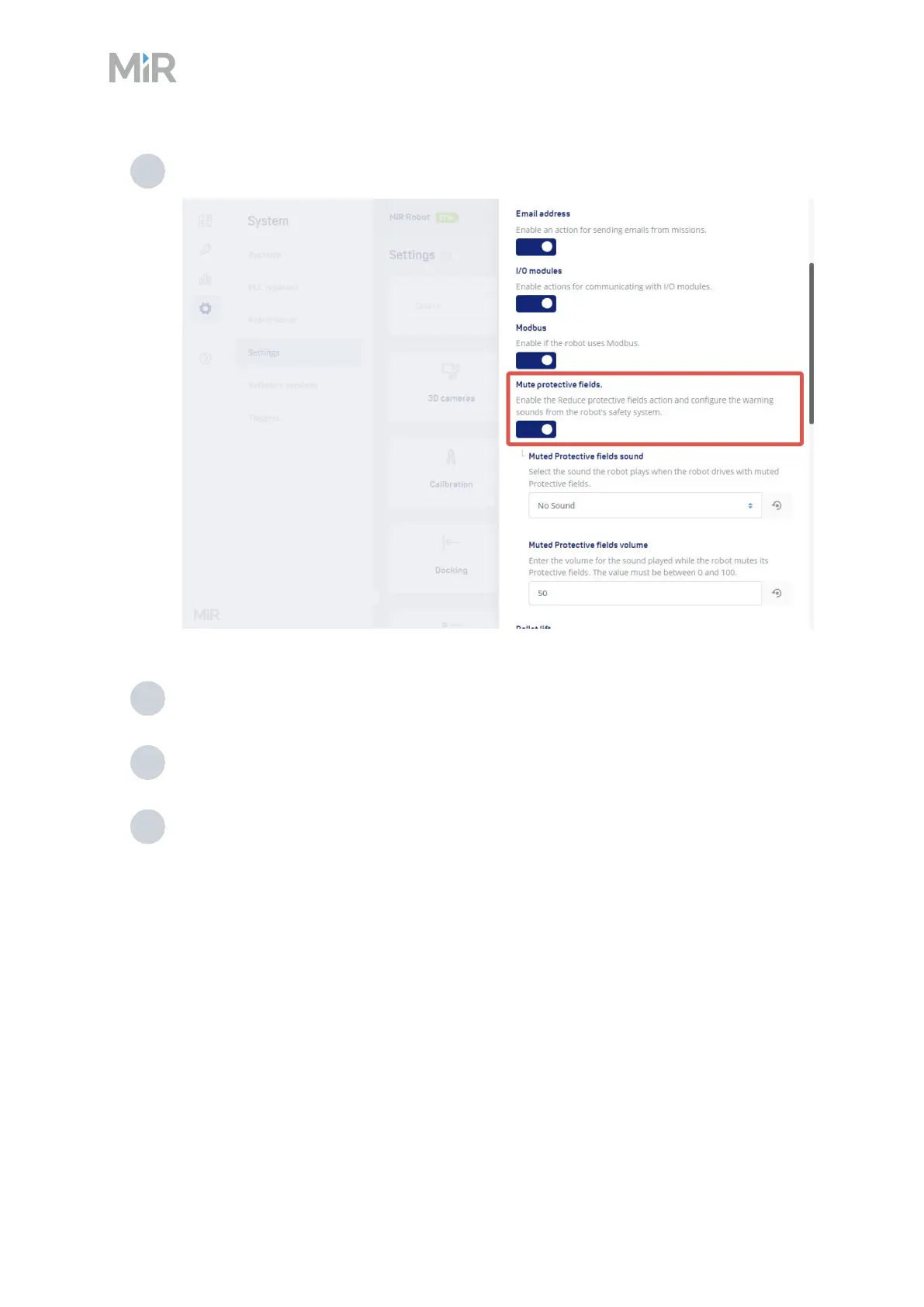 1 Enable Mute protective fields under System>Settings >Features.