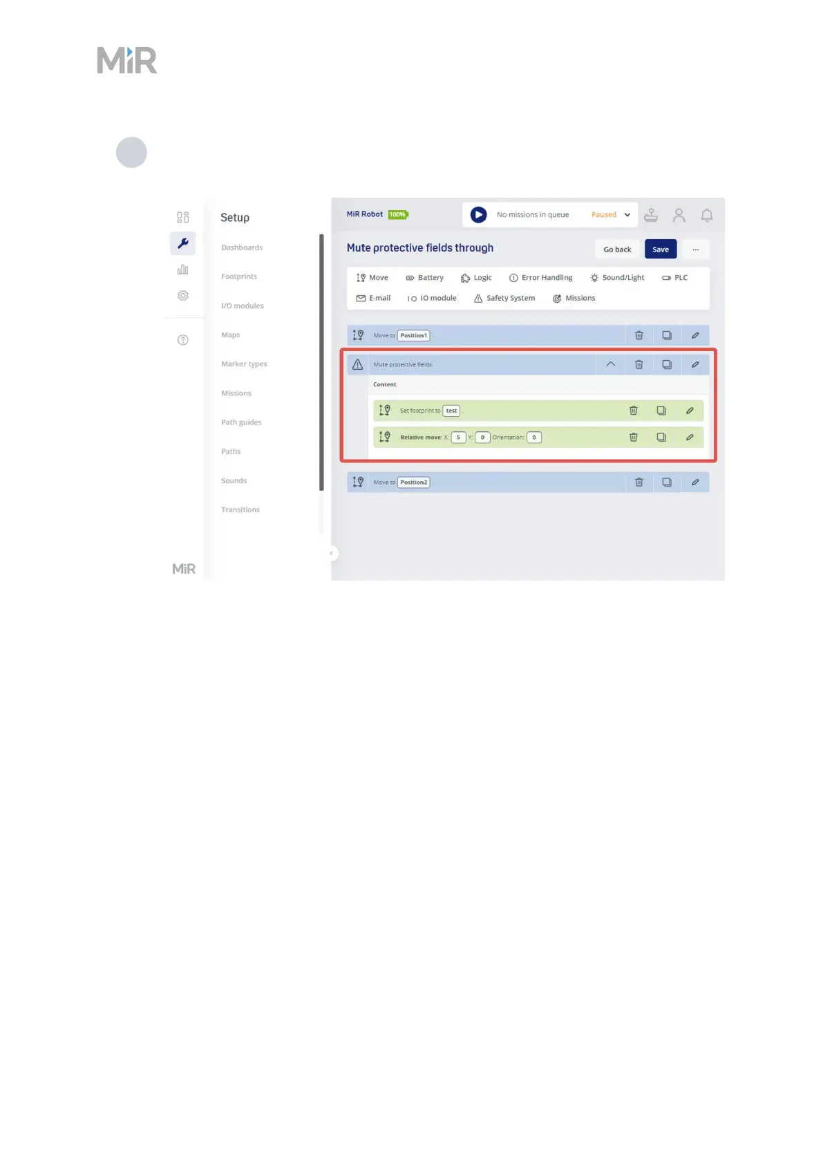 5 Add and drag all the actions you want the robot to execute with muted Protective fields