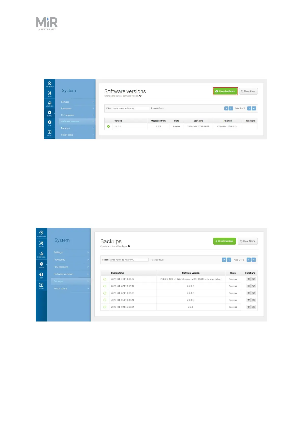2. Go to System > Software versions and select Upload software.