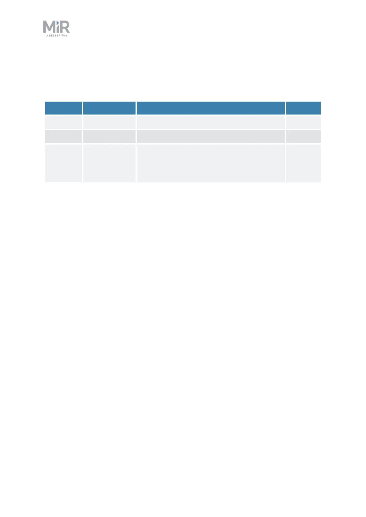 MiR250 User Guide (en) 07/2020 - v.1.2 ©Copyright 2020: Mobile Industrial Robots A/S. 9