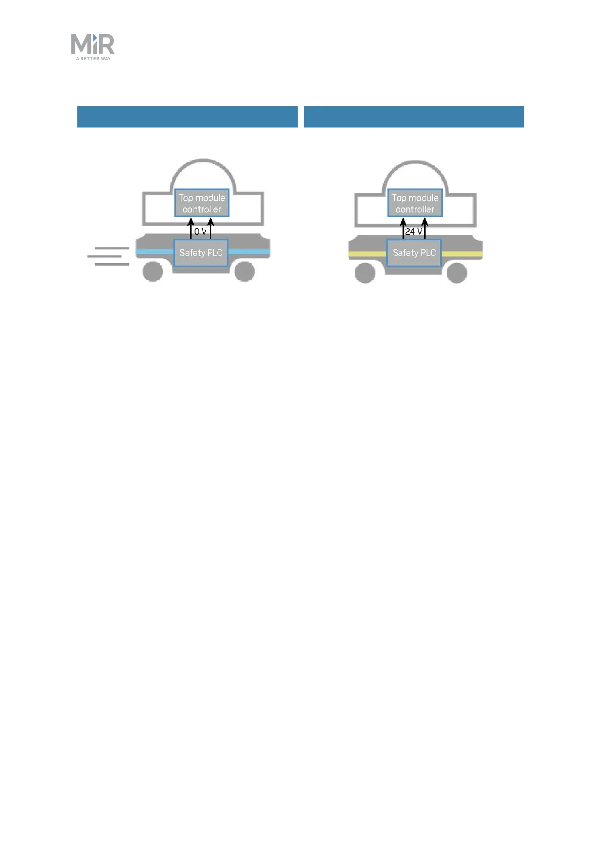 Figure 9.7. When the robot is driving, the safety PLC sends a 0 V signal to the top module through the Auxiliary