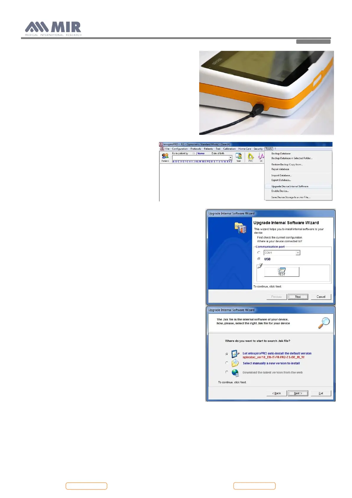 winspiroPRO can check the correct functioning of the USB port