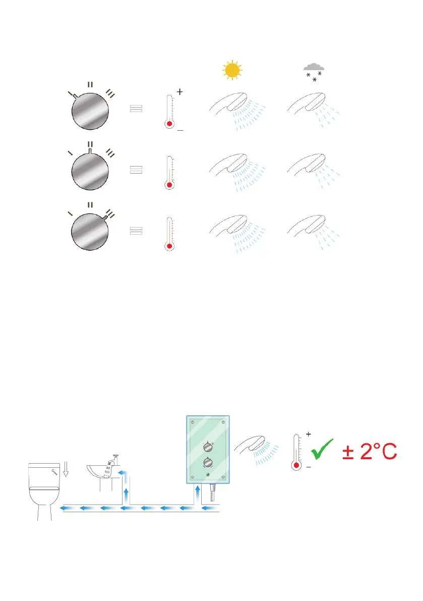 During extremes of mains water supply temperature, adjust heater setting to obtain