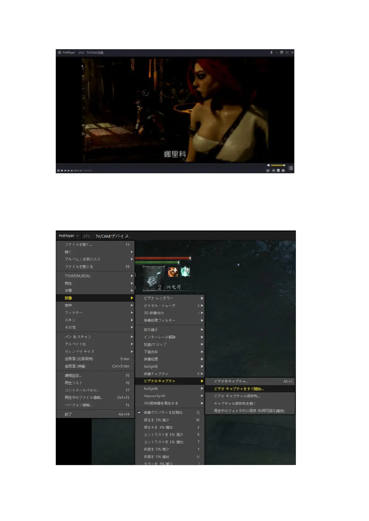 ⑦ビデオを録画する場合は、PotPlayer のメニューをクリックし、「映像」-ビデオのキャ
