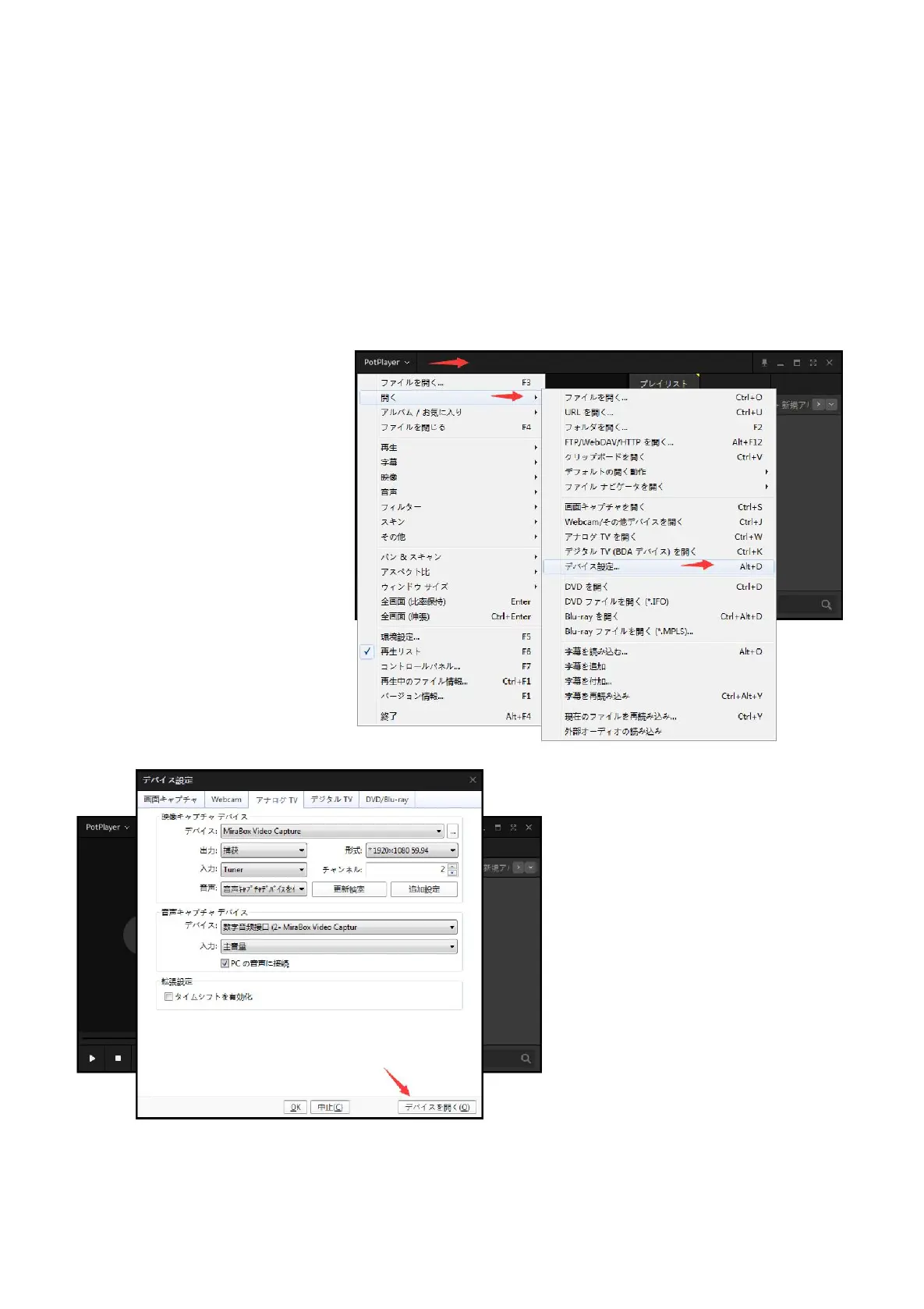 3. 左クリック "PotPlayer" --- "開く" --- "デバイス設定" --- "Analog