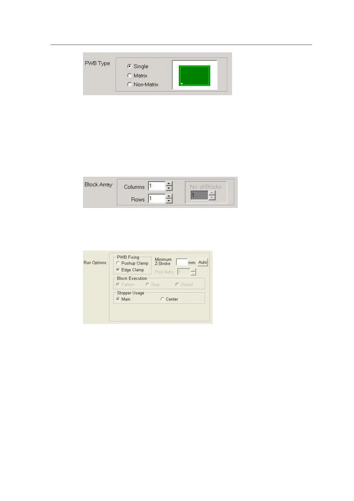 • Single: PWB is configured in a single board without block.