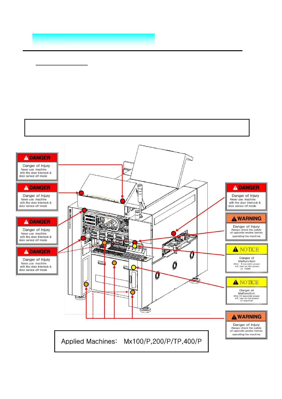 For safety purpose, warning labels are attached as shown below.