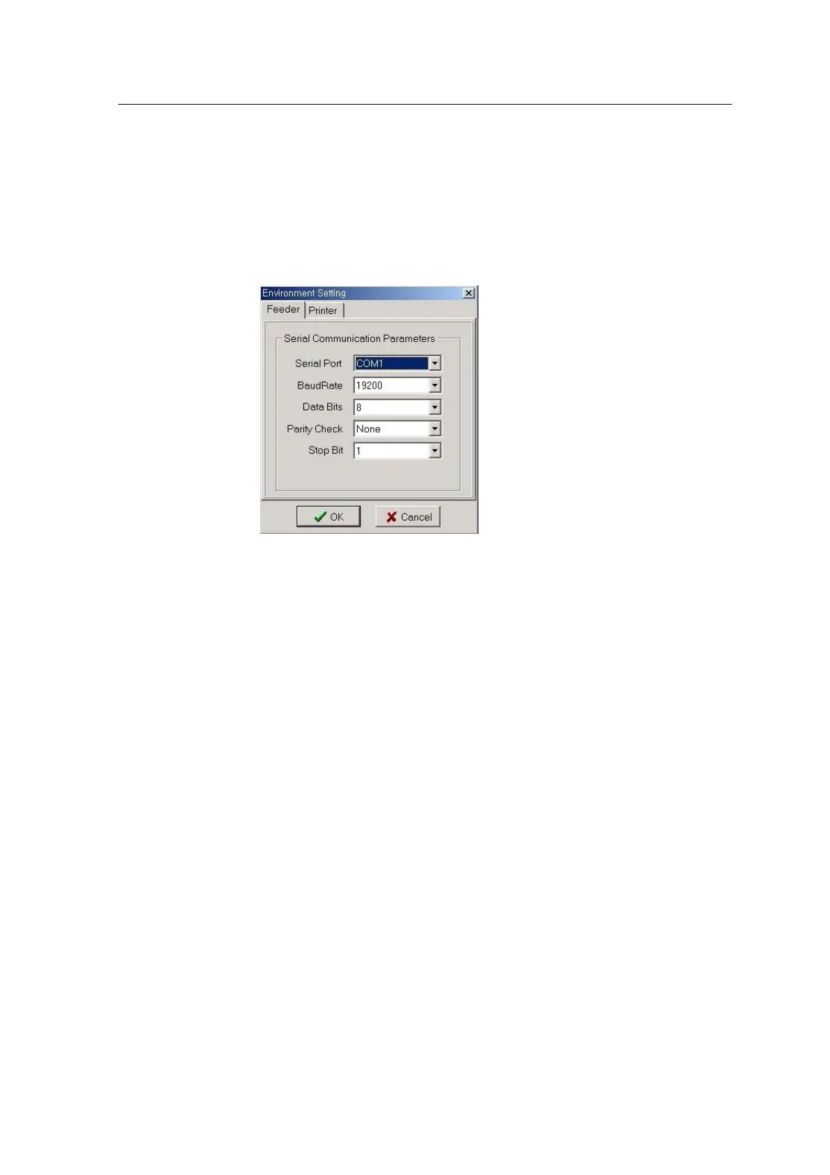 <Fig. 4-3ᆞ Feeder Communication Parameter and Printer Setup Window>