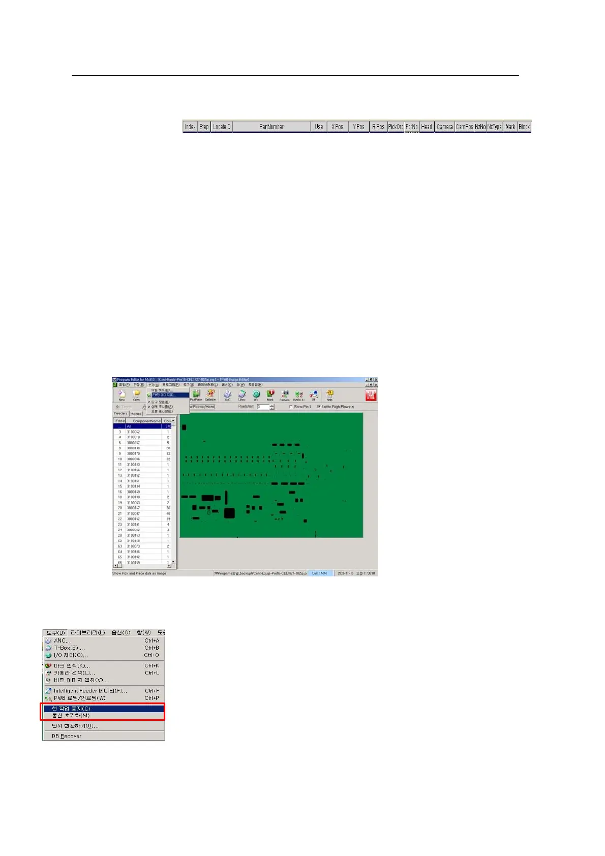 * PWB image: Shown at the bottom of the View menu. Used to view missing parts in production.