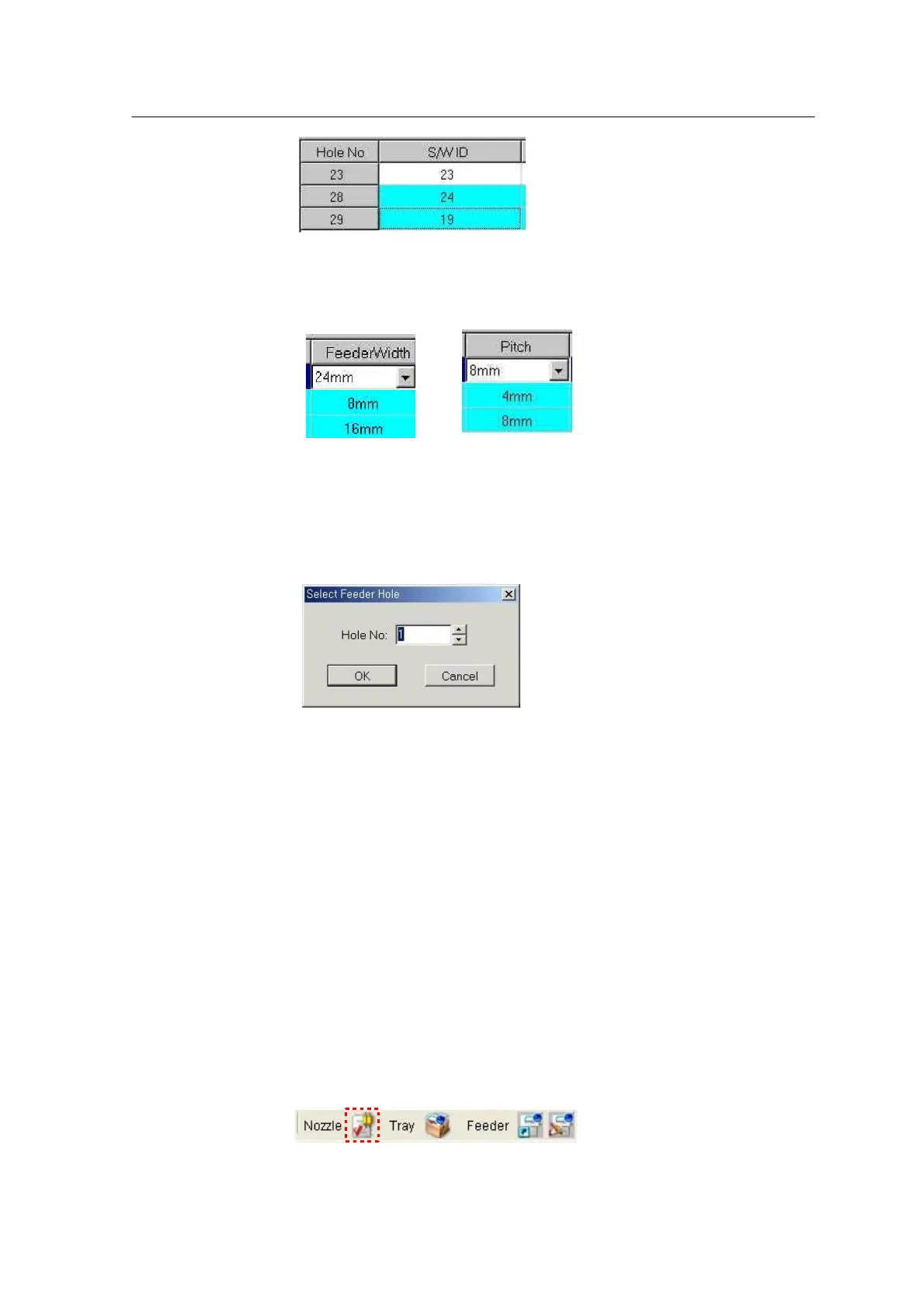 <Hole No, S/W ID> ※Identified with different numbers in case of an alpha feeder but recognized as the