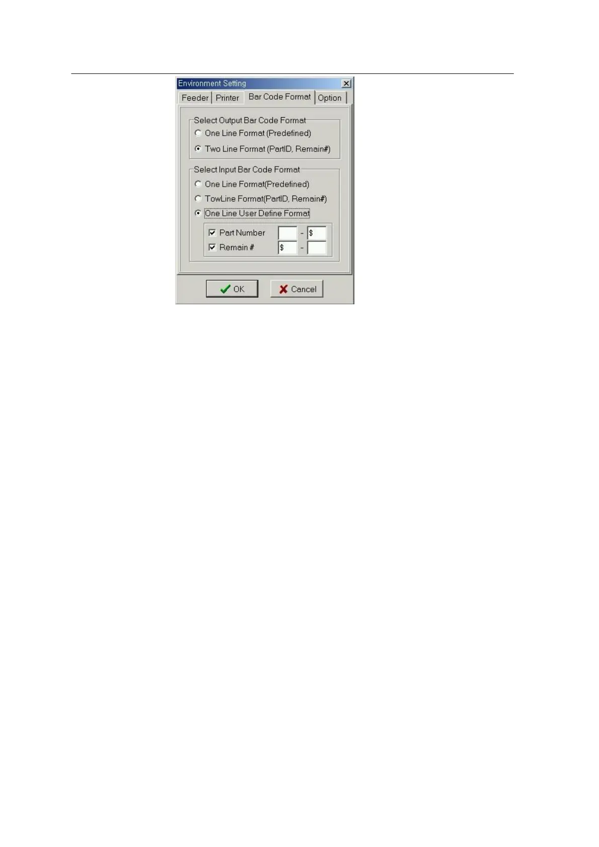 <Fig. 4-9 Set Input/Output Barcode Format Page>