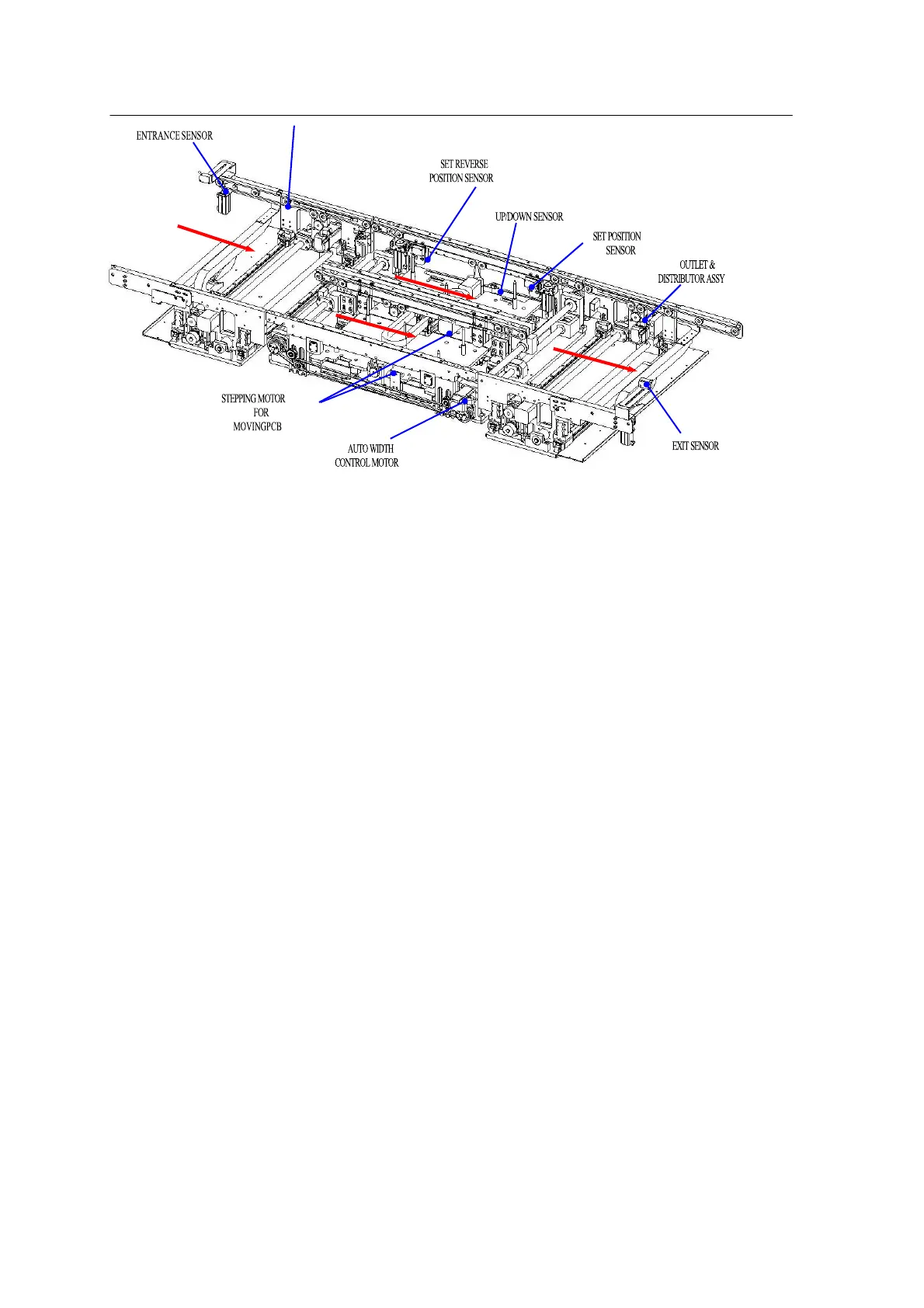 When the PCB enters the WORK area, the main stopper stops the PCB and