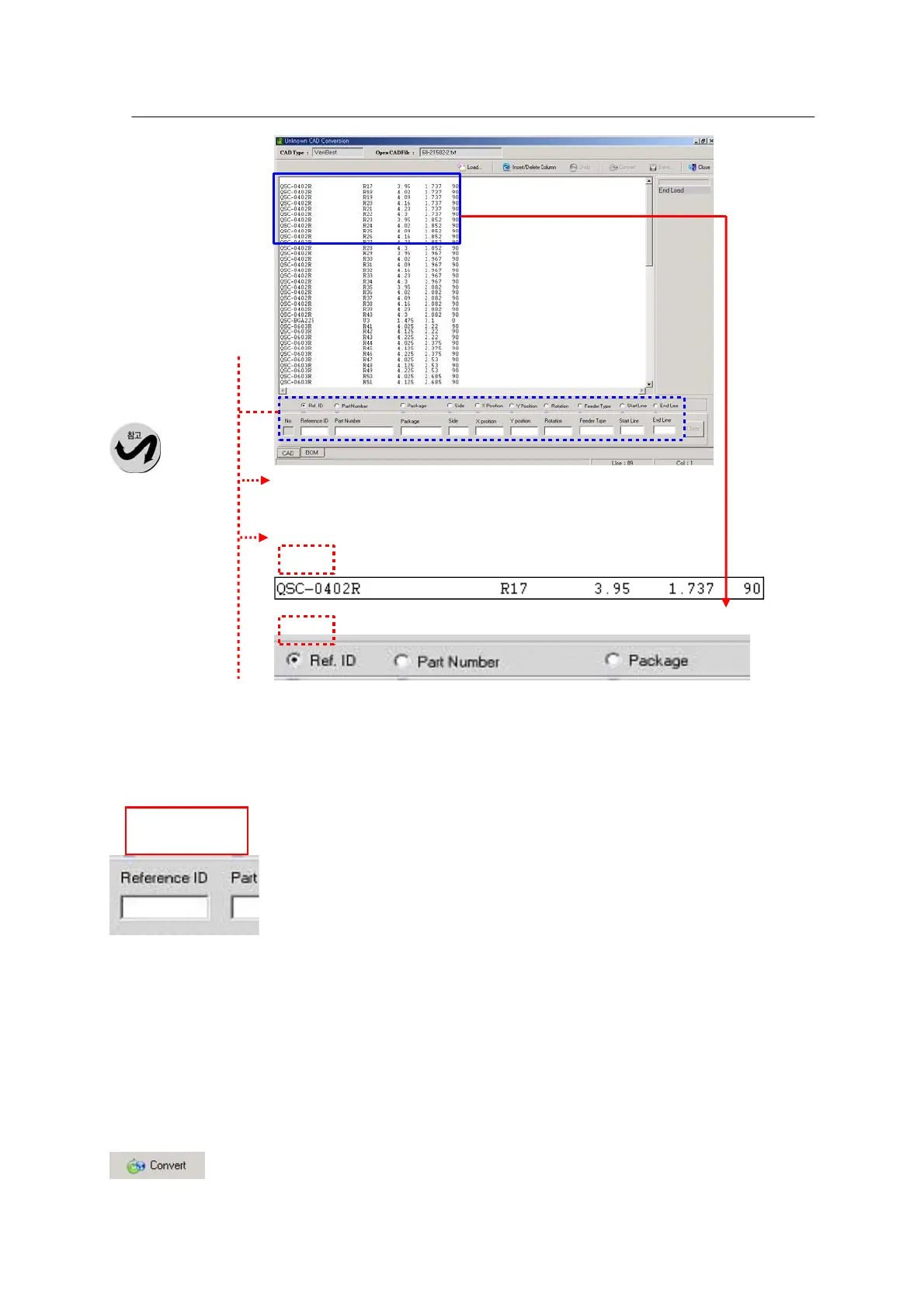 Enter Ref ID (Locate ID), Part Number, X position, Y position and Rotation.