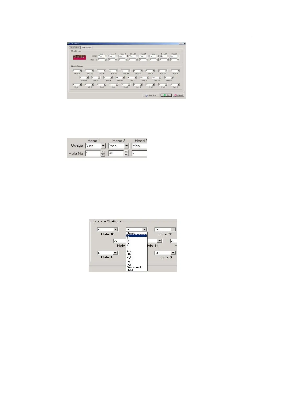 • Hole No: Presence of nozzle equipped in the current head. ‘0’ indicates that the head is not