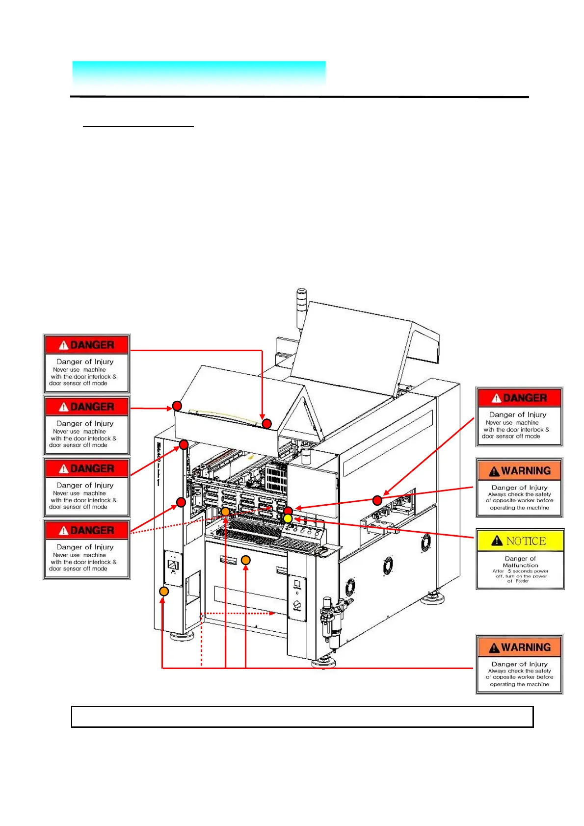 For safety purpose, warning labels are attached as shown below.