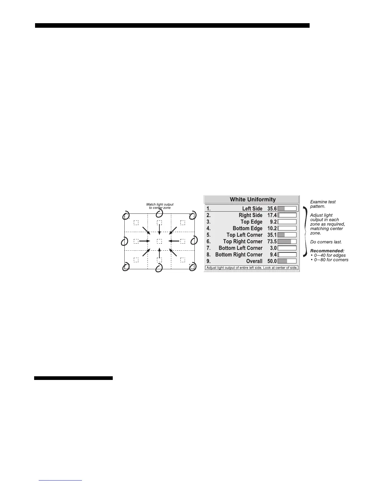 the center. If any of the areas differ, use the White Uniformity menu to match