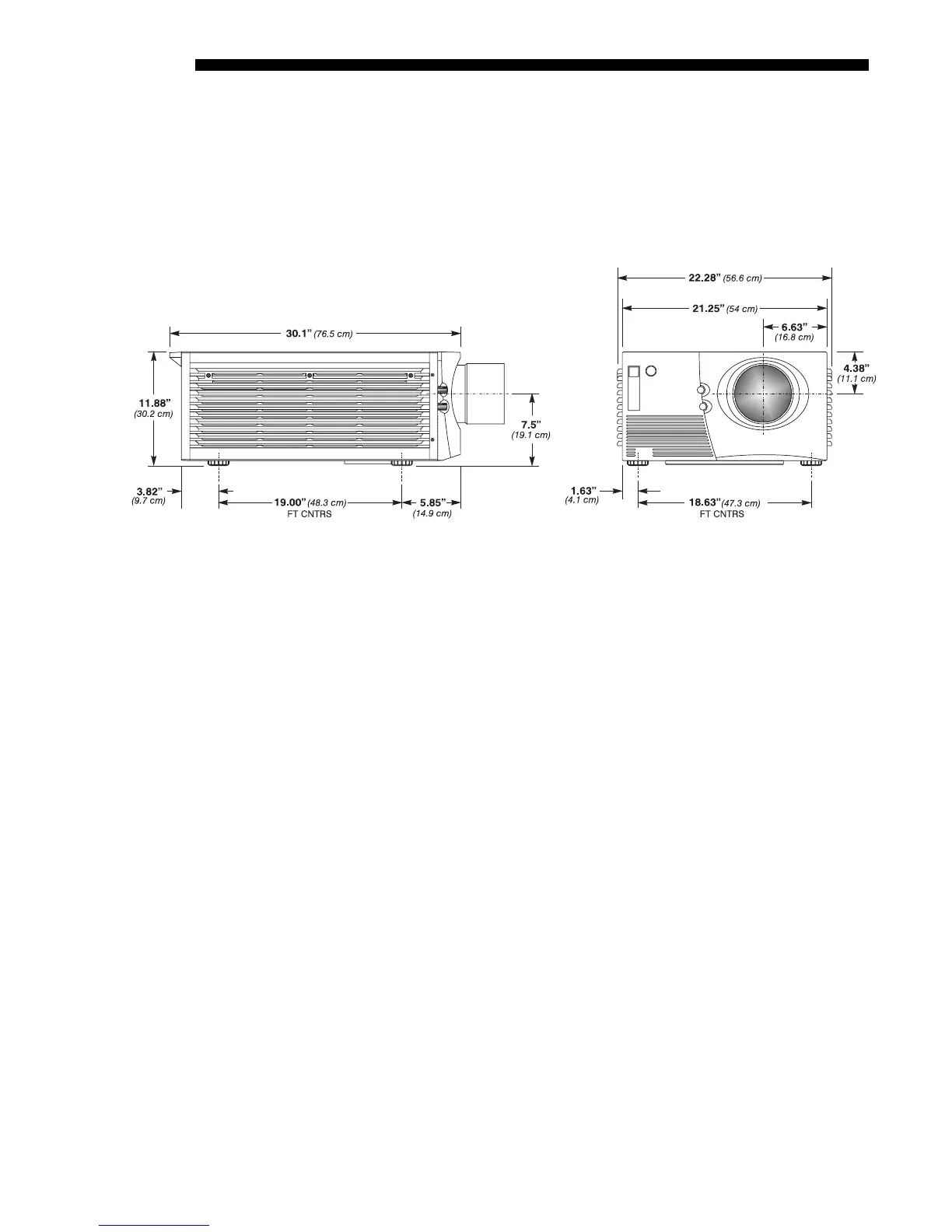 Size (minimum W x L x H of product, no lens) 22.3” (56.6 cm) x 30.1” (76.5 cm) x