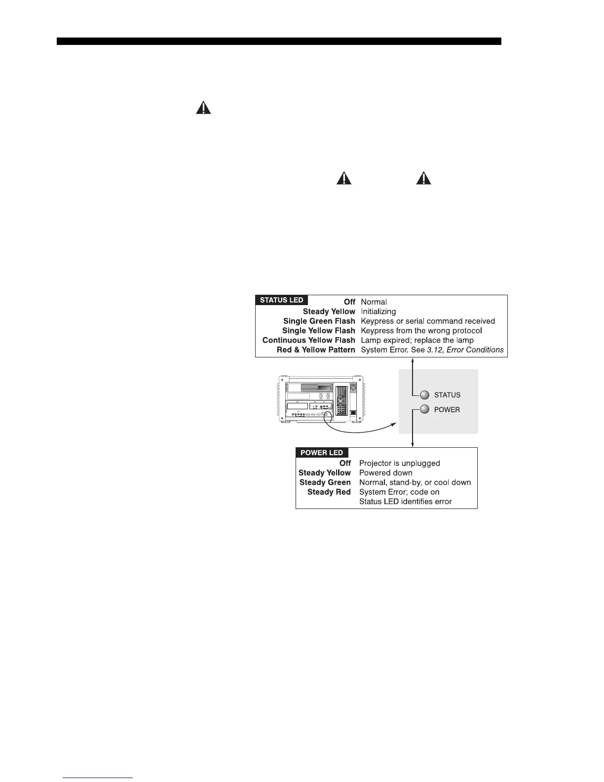 corner of the rear connector panel indicate projector "Status" (top) and "Power"