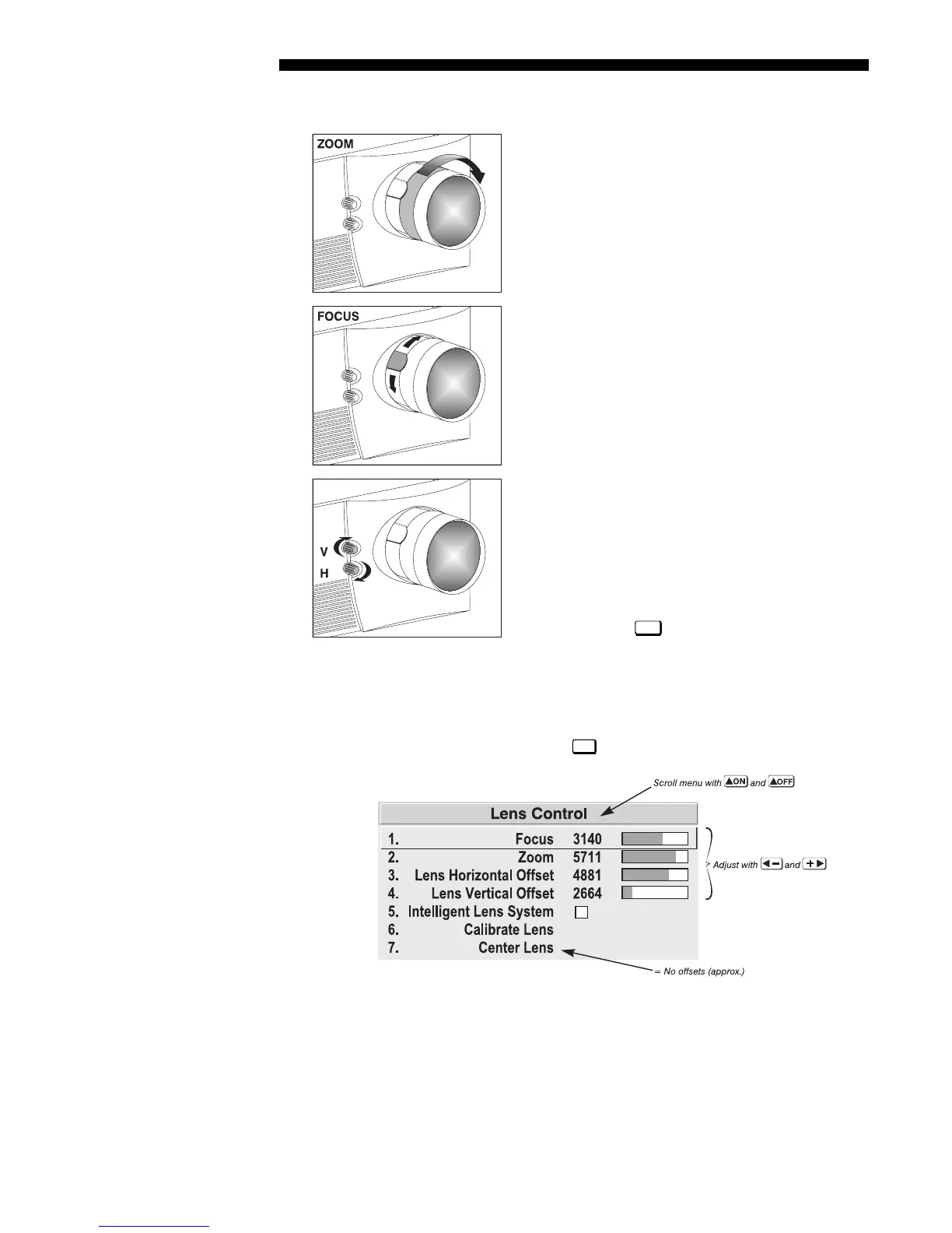 adjustments (see Section 3 for details). Then, with the Lens Control menu displayed,