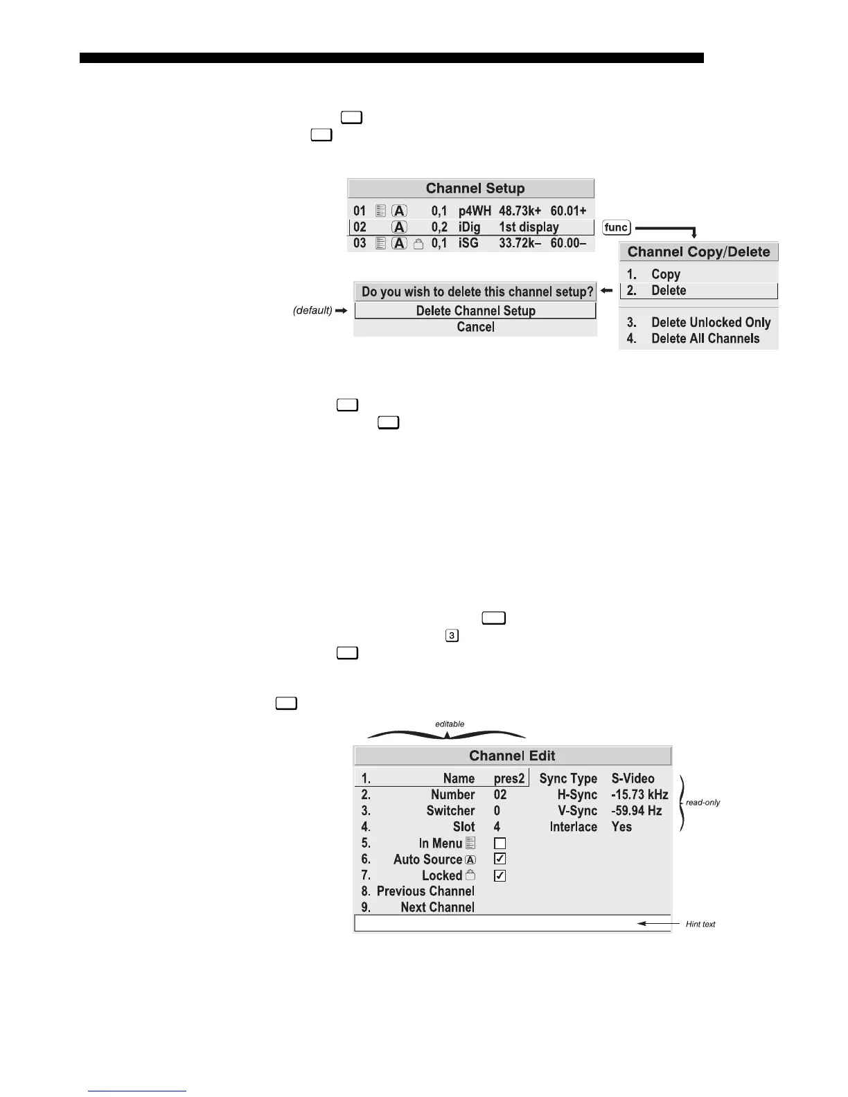 Channel Edit submenu.