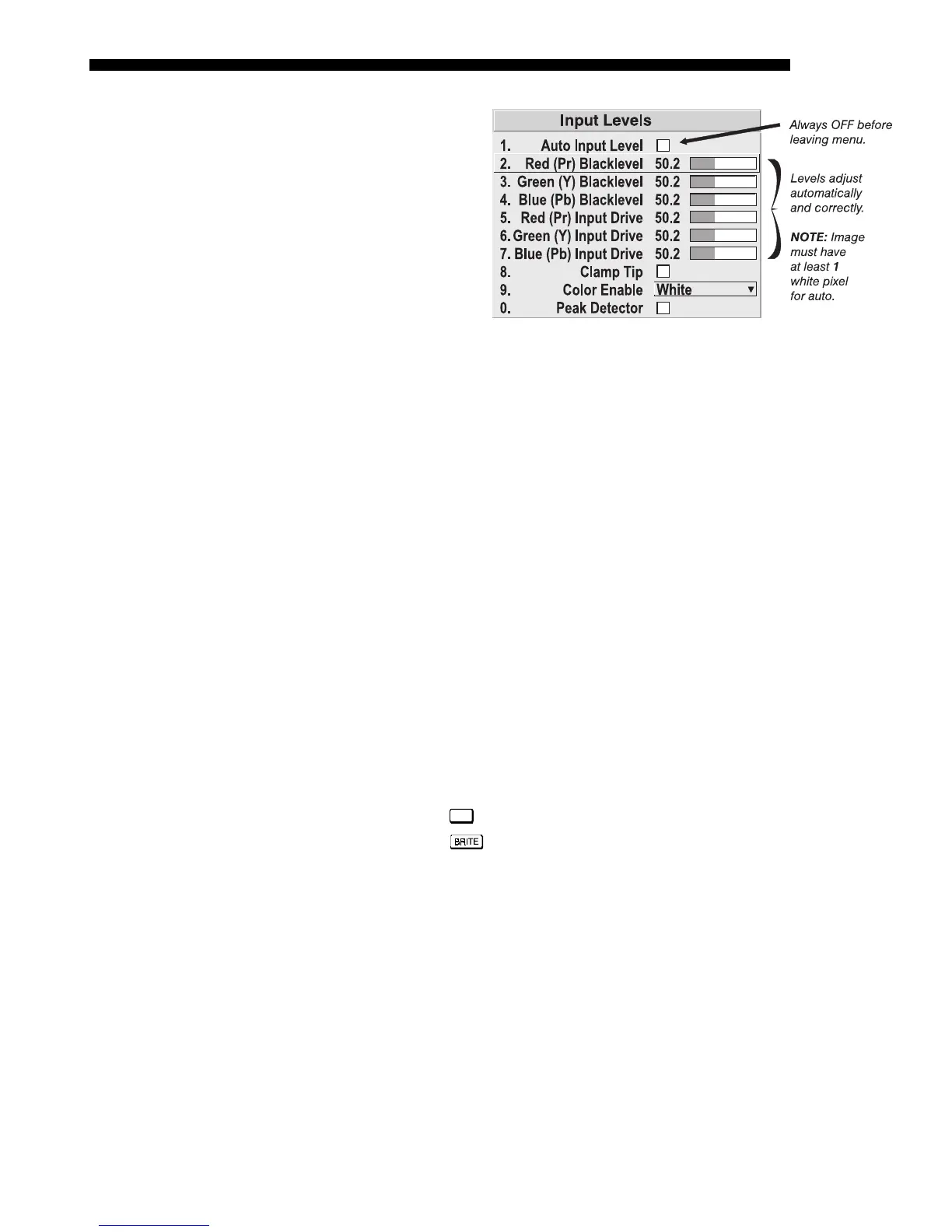 4. If the blacks and/or whites appear OK, input levels do not need