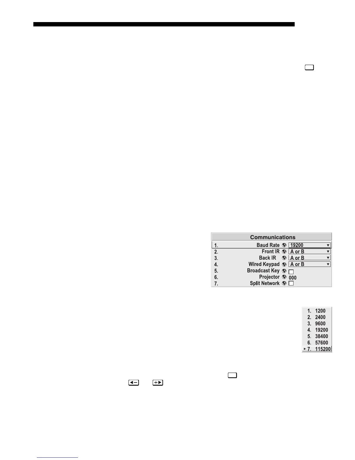 from the projector. By default, the projector baud rate is set to 19200.