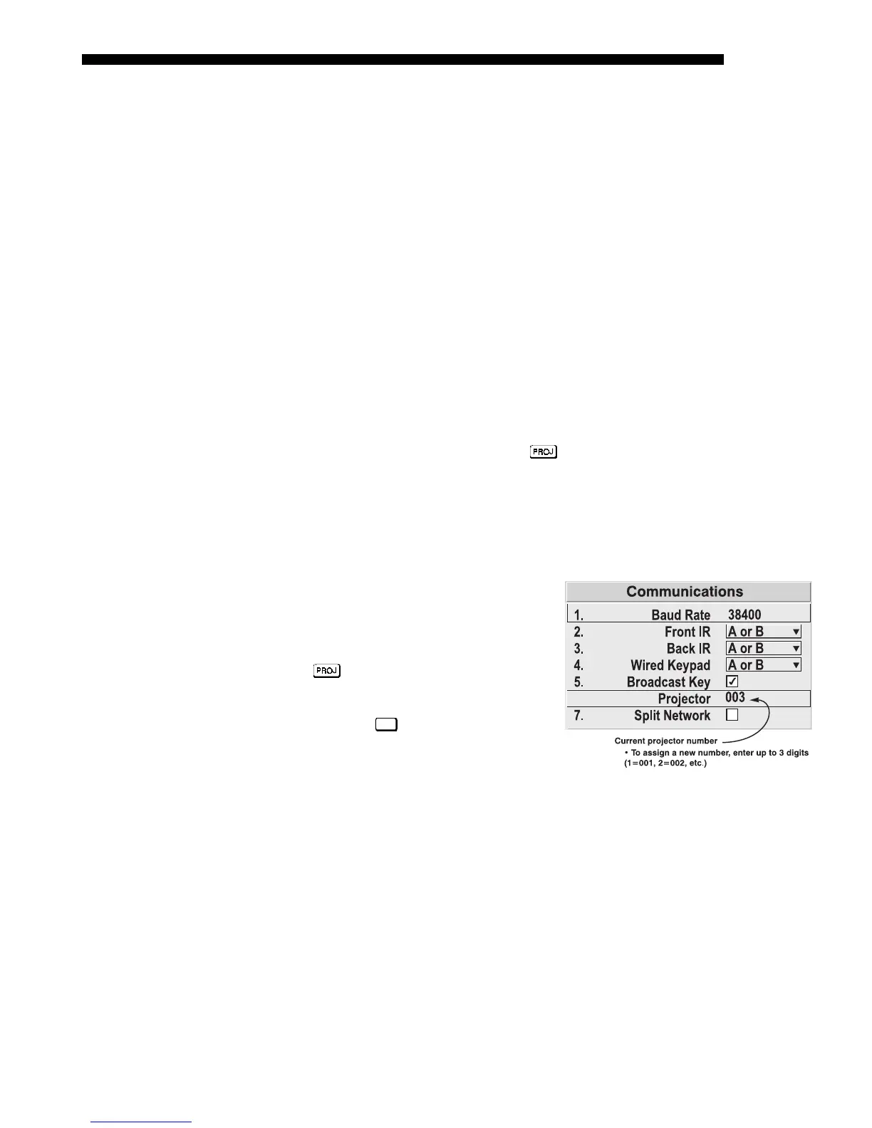 effect of a broadcast setting and allow you to control a specific projector when