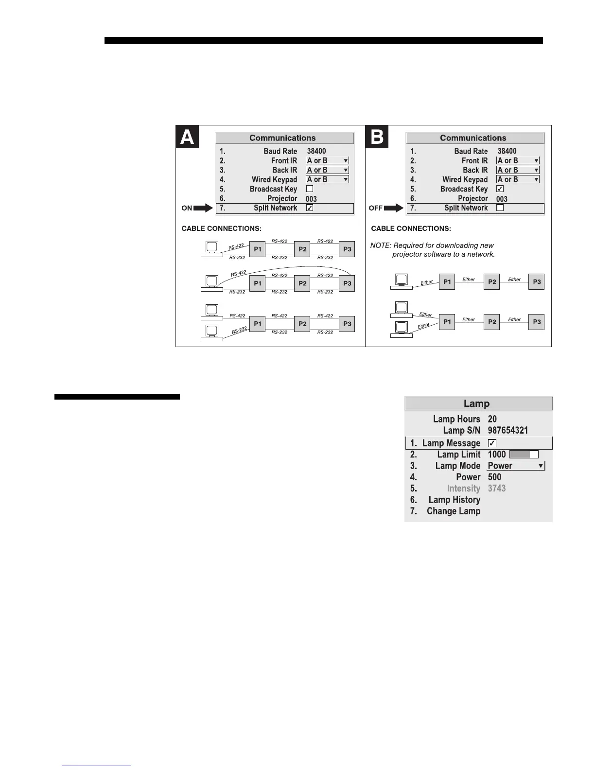 projectors in a network. 2) Set each projector’s Broadcast Key OFF. 3) Keypads