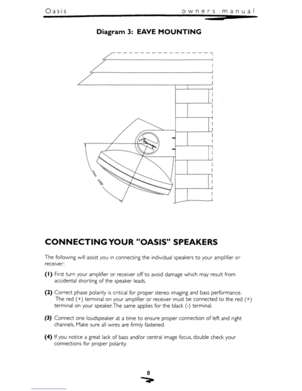 Mirage OASIS - Connecting Your Oasis Speakers; Correct Phase Polarity; Connecting Loudspeakers