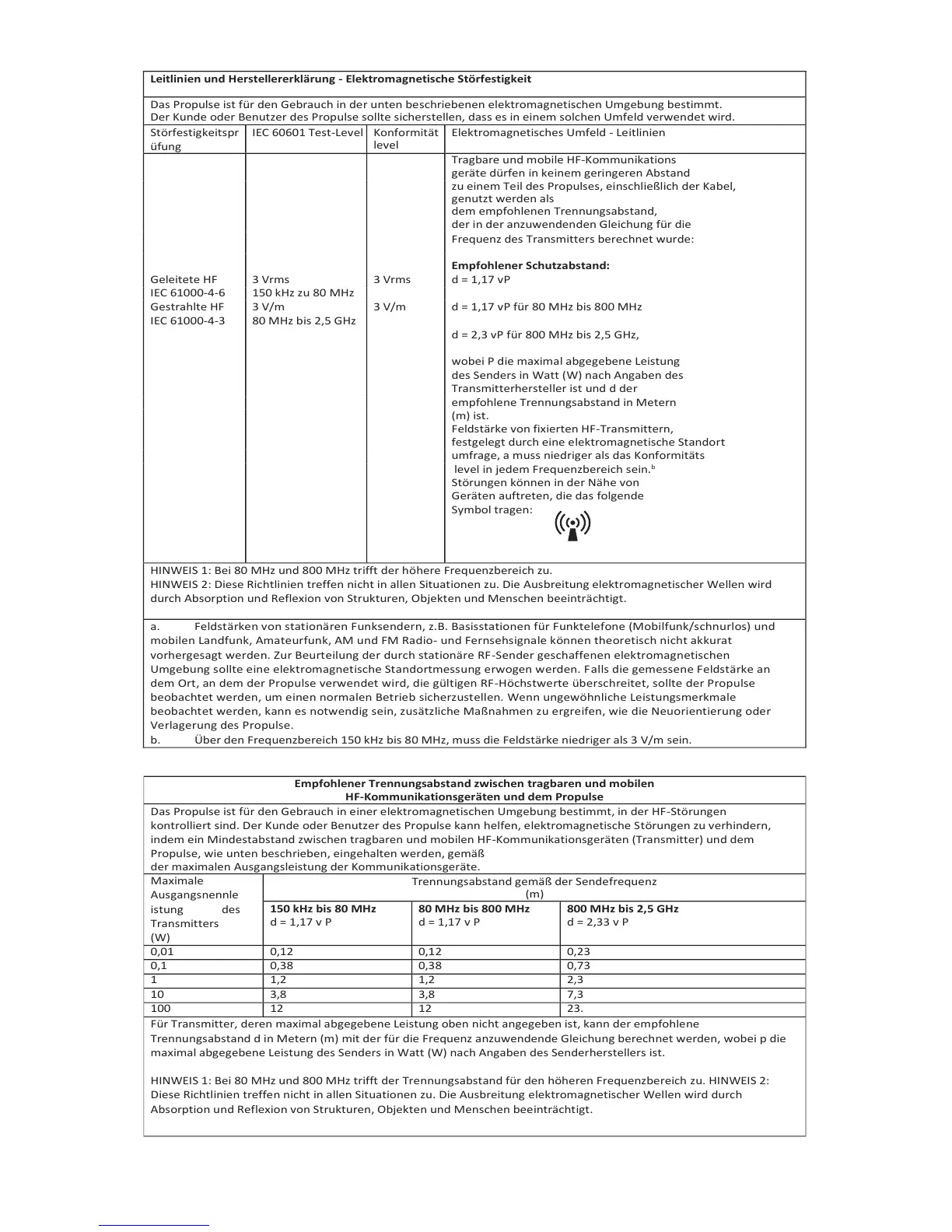 Das Propulse ist für den Gebrauch in einer elektromagnetischen Umgebung bestimmt, in der HF-Störungen