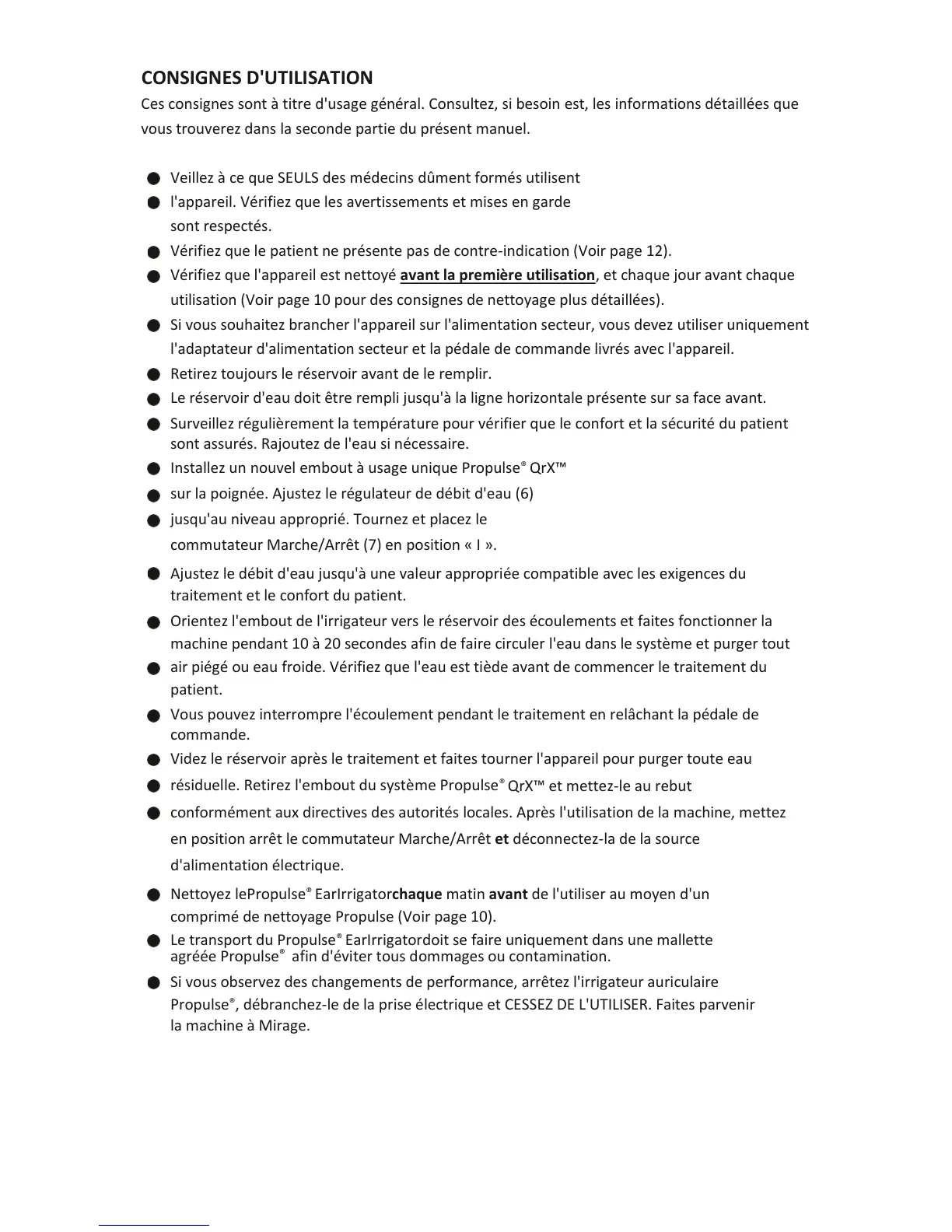 Si vous observez des changements de performance, arrêtez l'irrigateur auriculaire