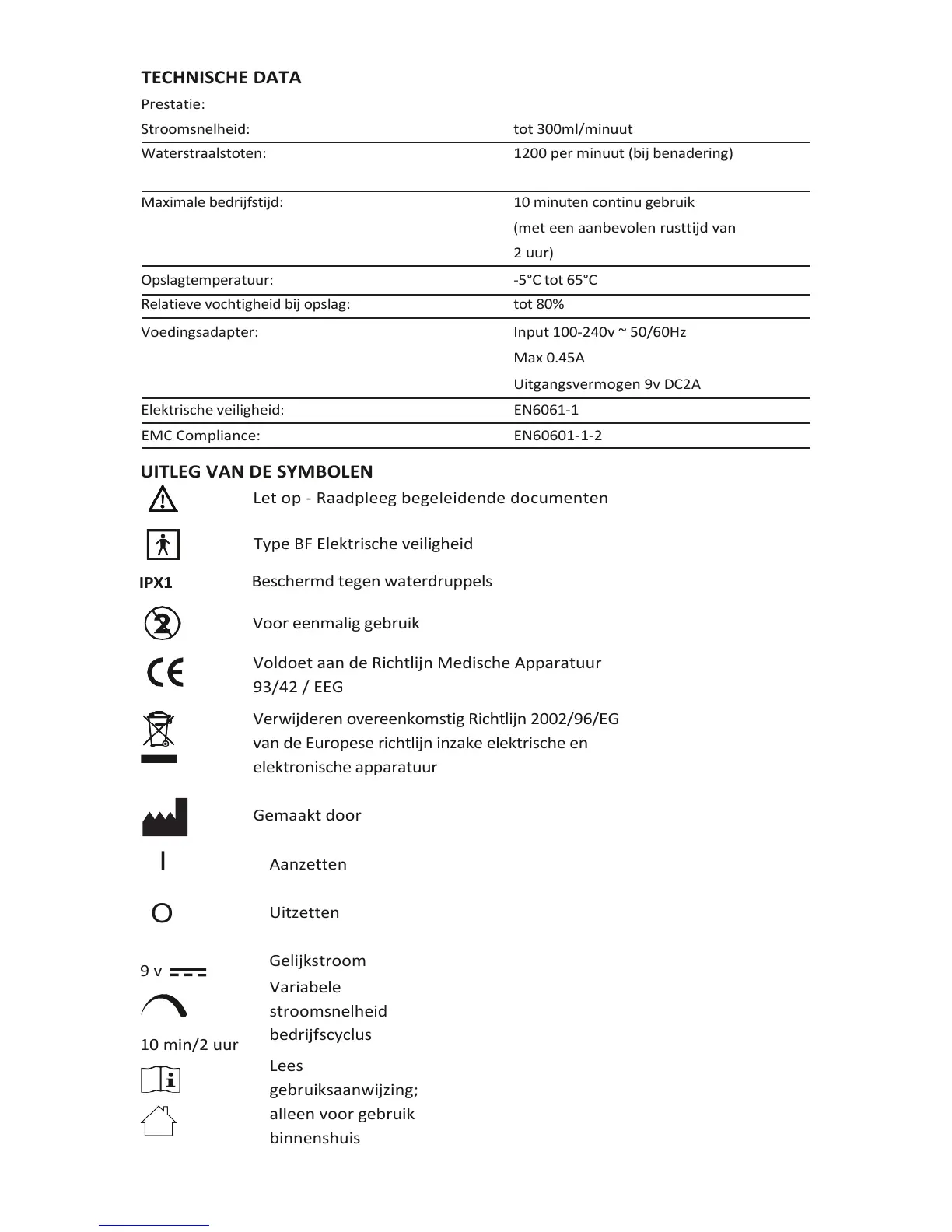 Maximale bedrijfstijd: 10 minuten continu gebruik