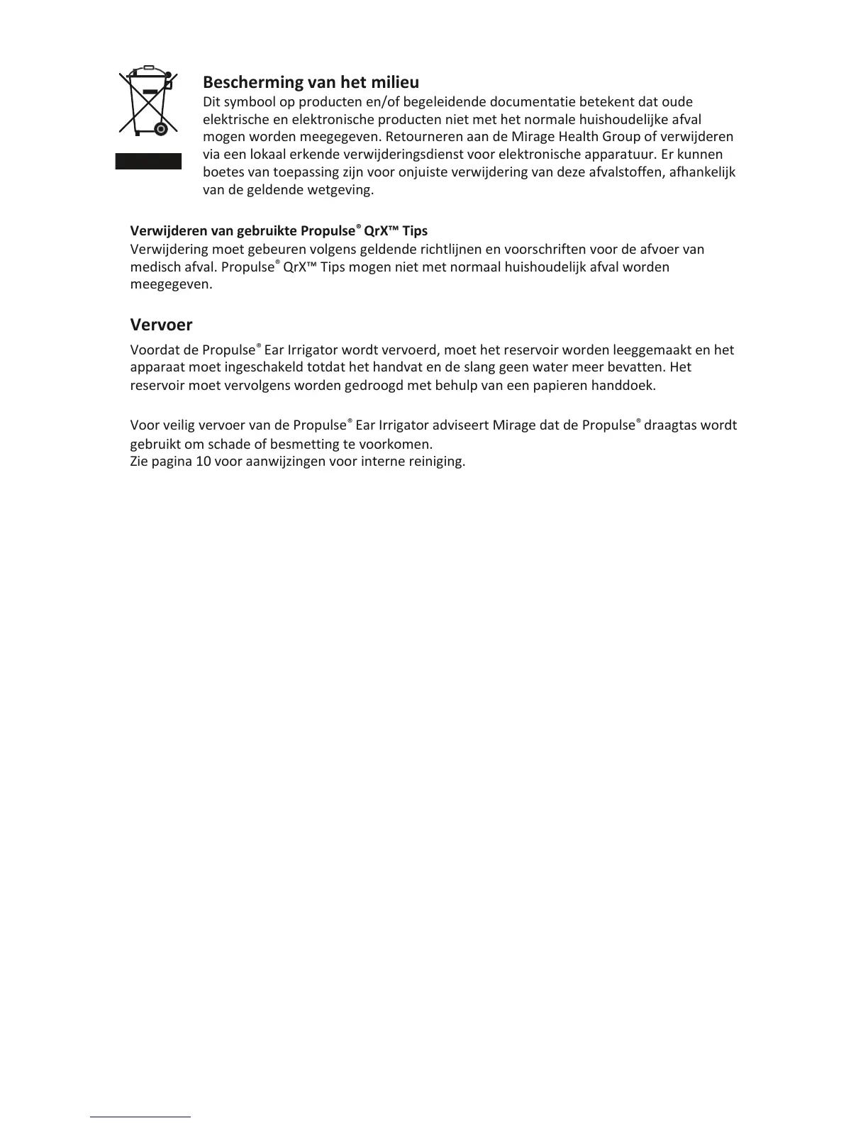 mogen worden meegegeven. Retourneren aan de Mirage Health Group of verwijderen