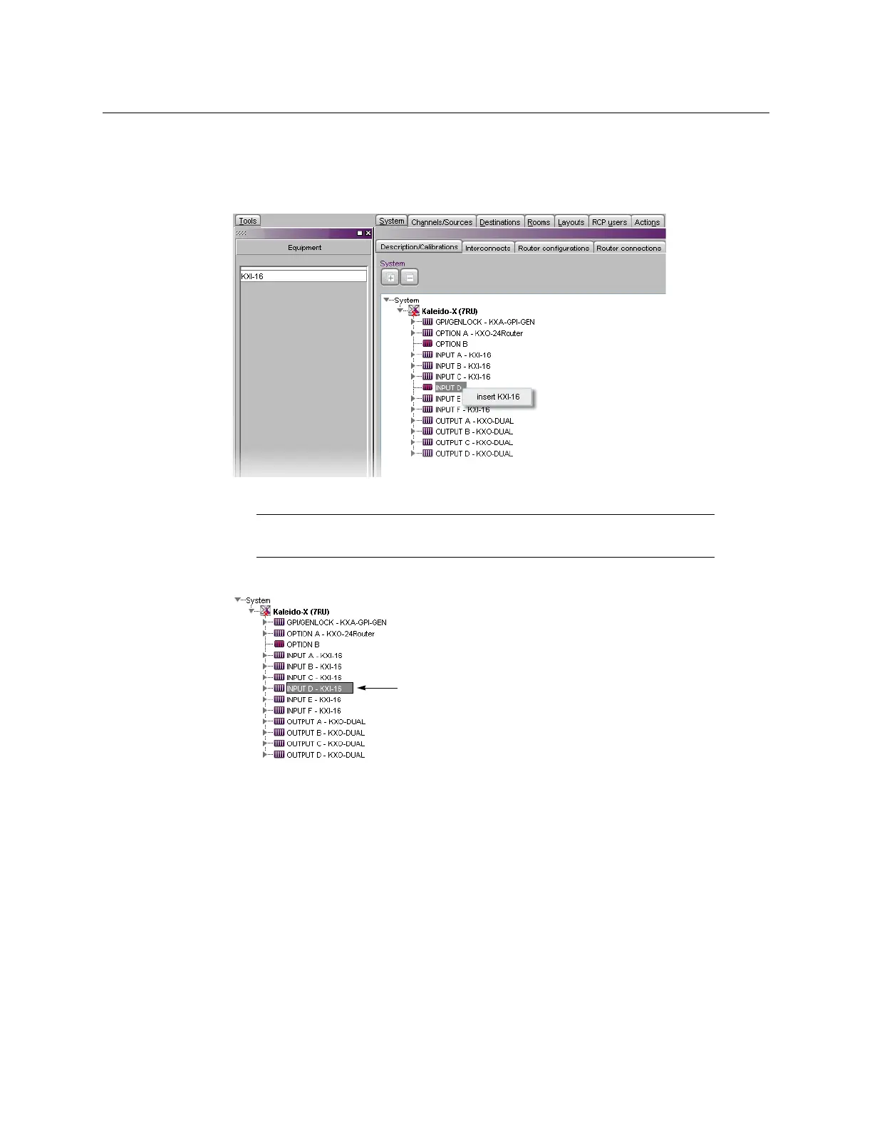 The slot name is now appended with the card type: for example, INPUT D - KXI-16.