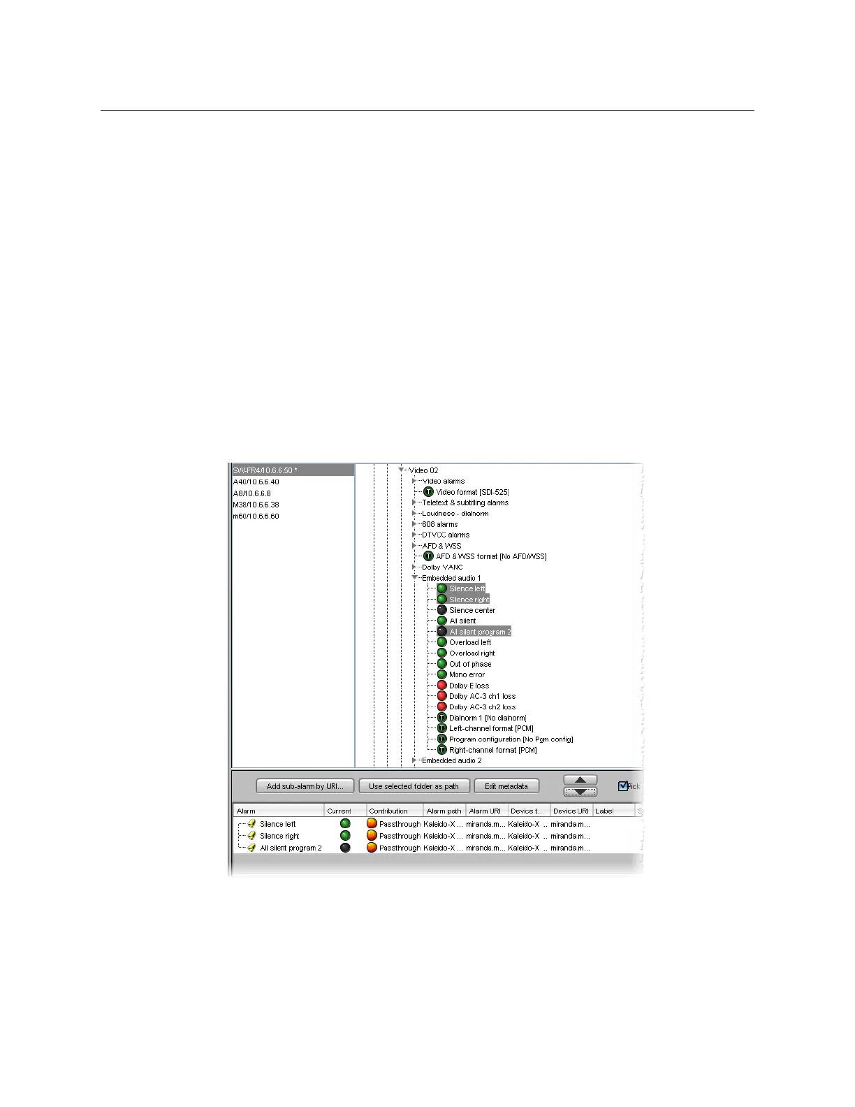 alarm browser pane.