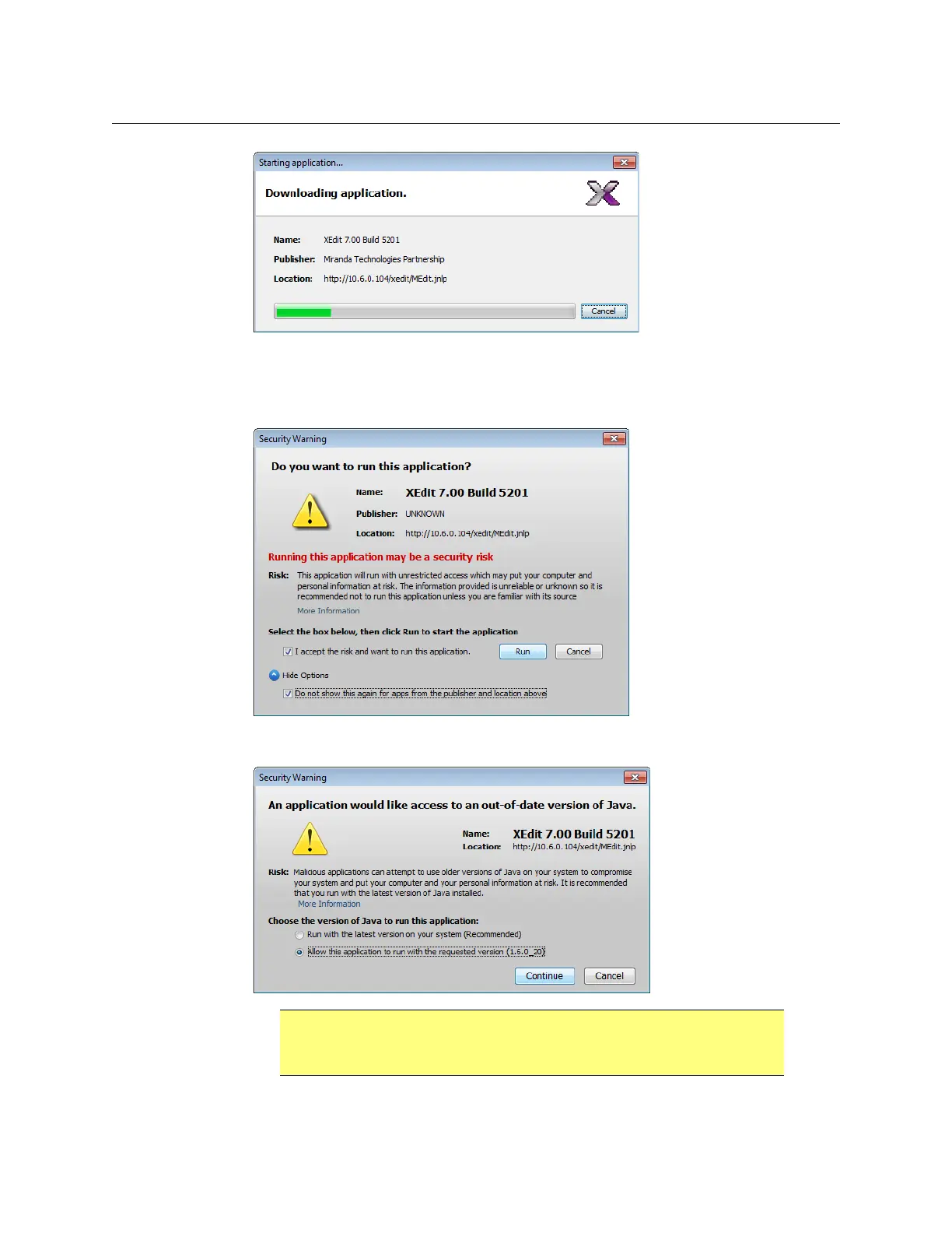 5 If you see a security warning about the Java version, click Allow this application to run