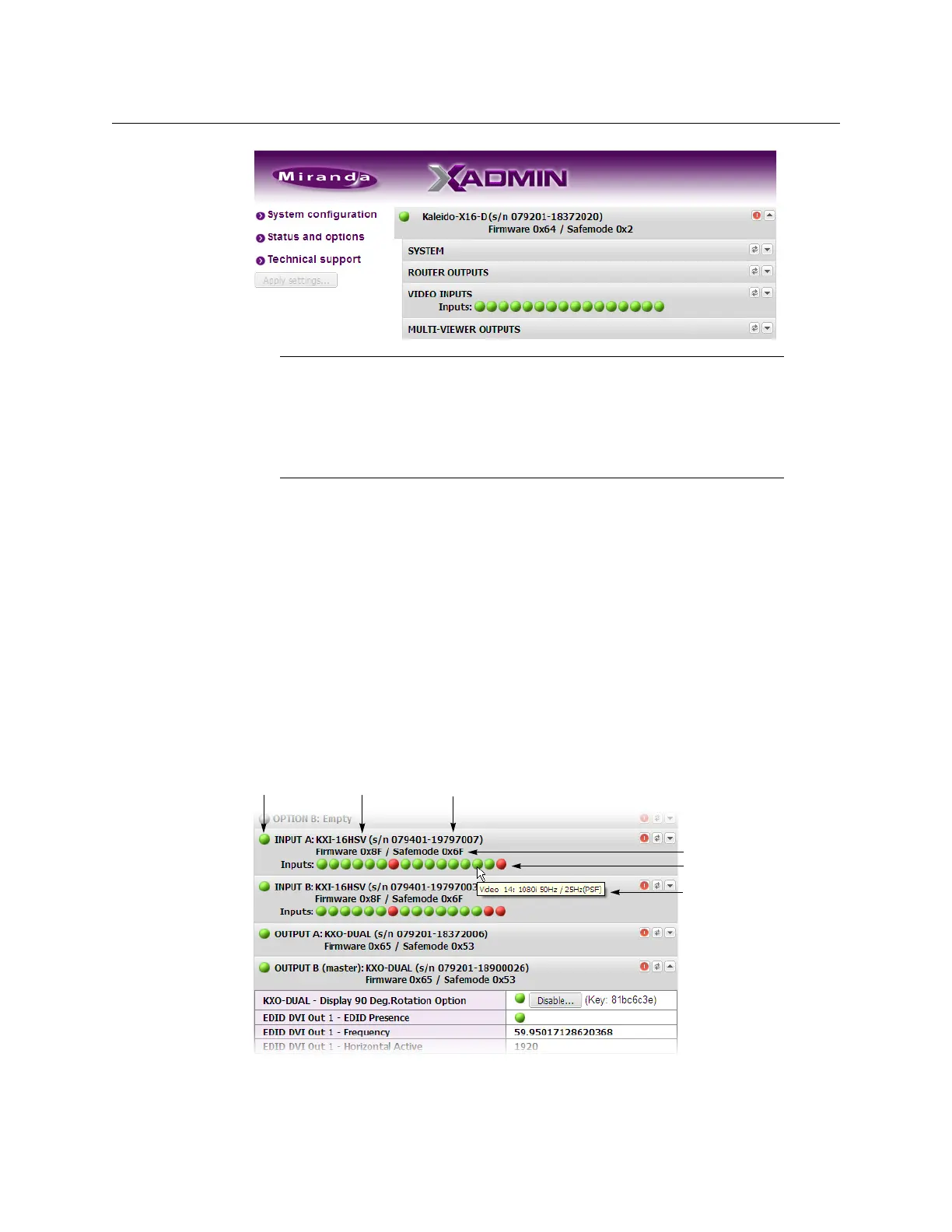3 Move the pointer to an input signal status indicator to view the associated signal