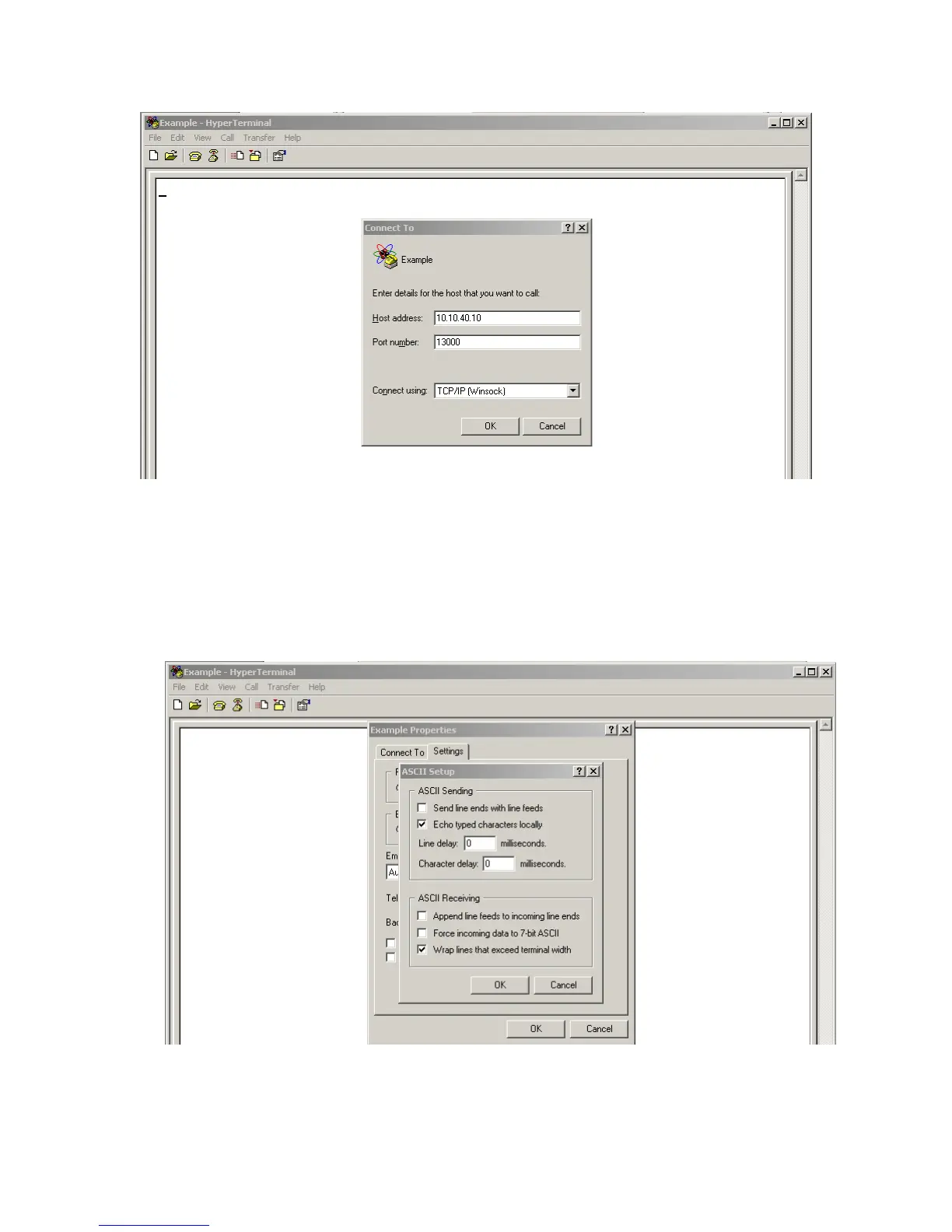 4. Click OK to close ASCII Setup window, and then click OK again to close the Properties window.