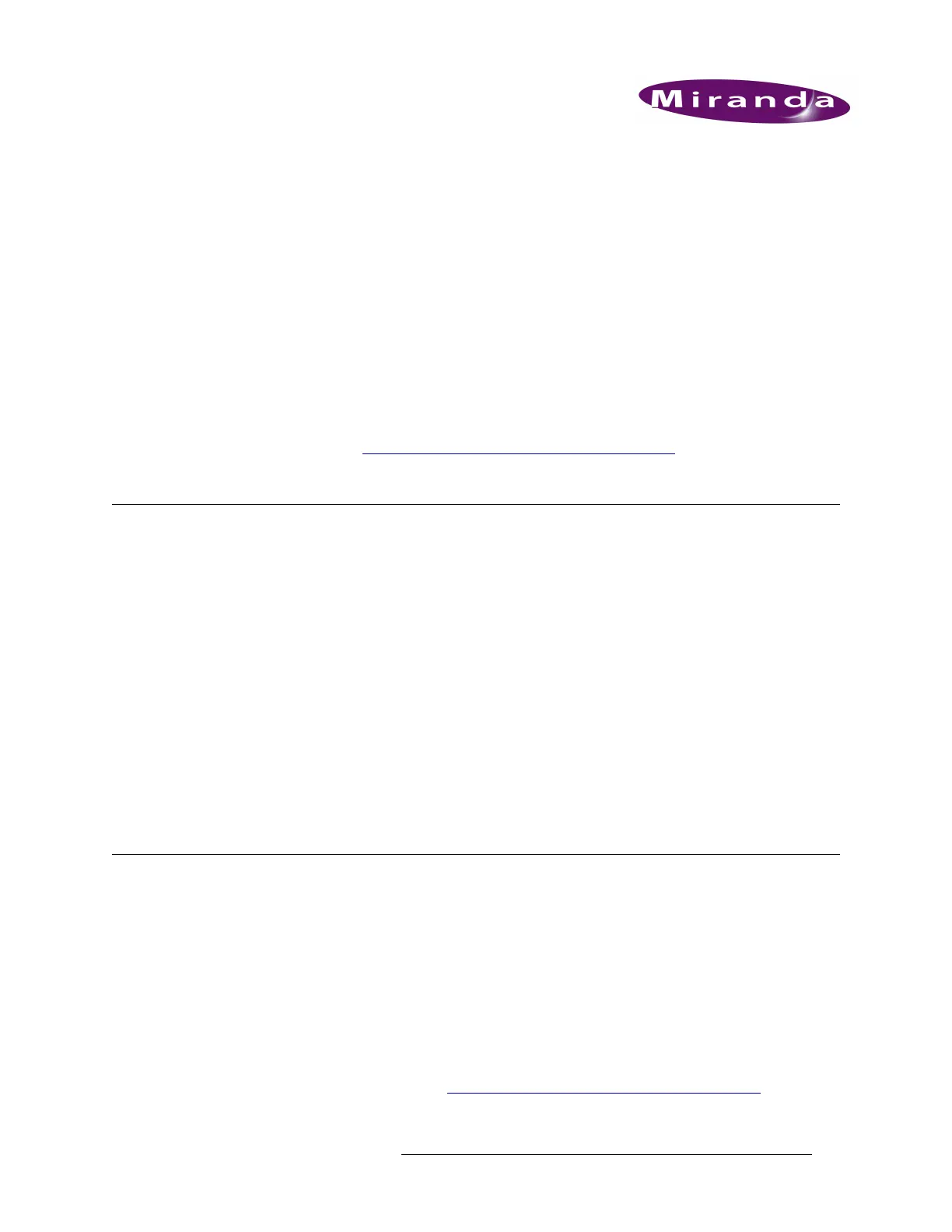 other manufacturers’ equipment, users are urged to work closely with Miranda’s technical staff and