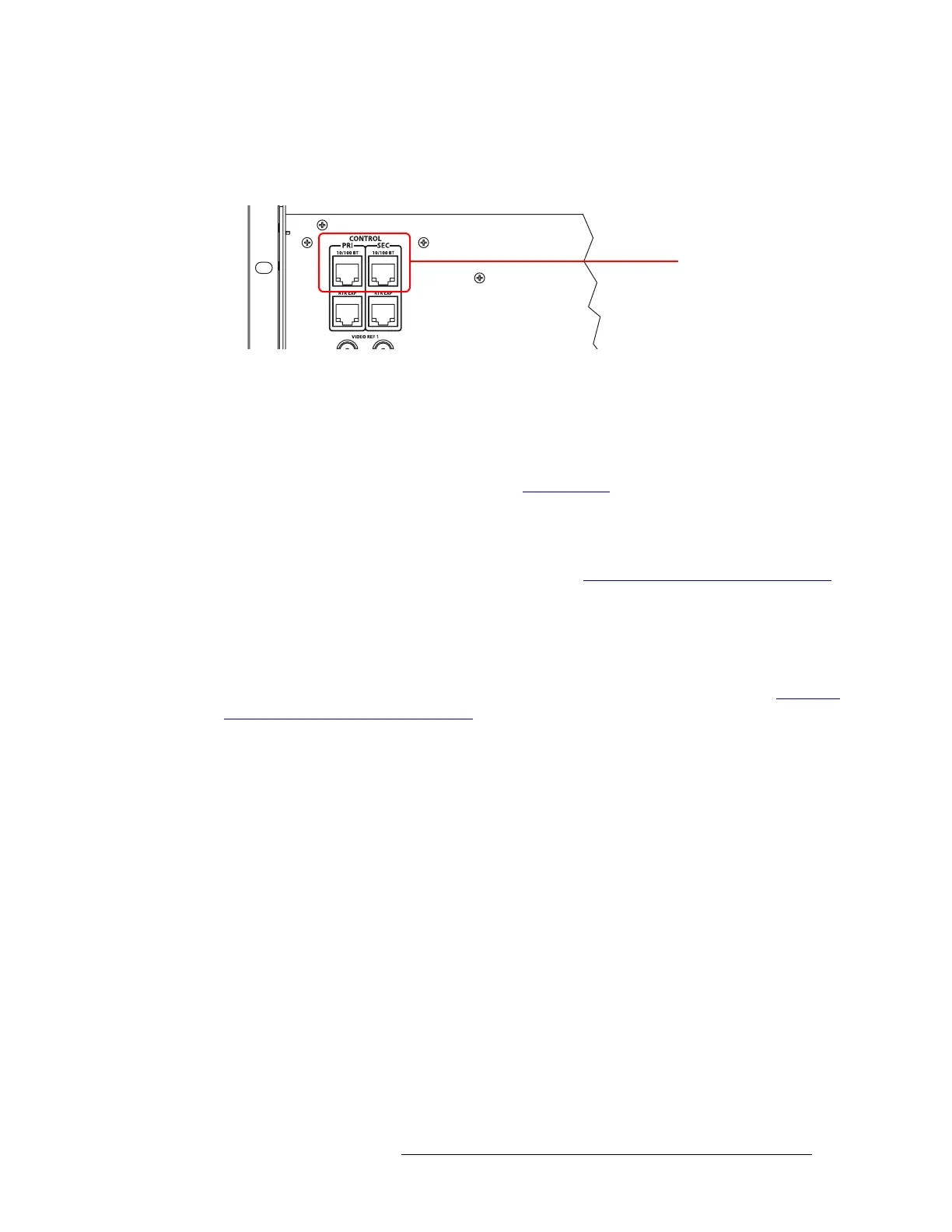 The control system expansion port is an RJ-45 port. The connection uses standard Ethernet cable.