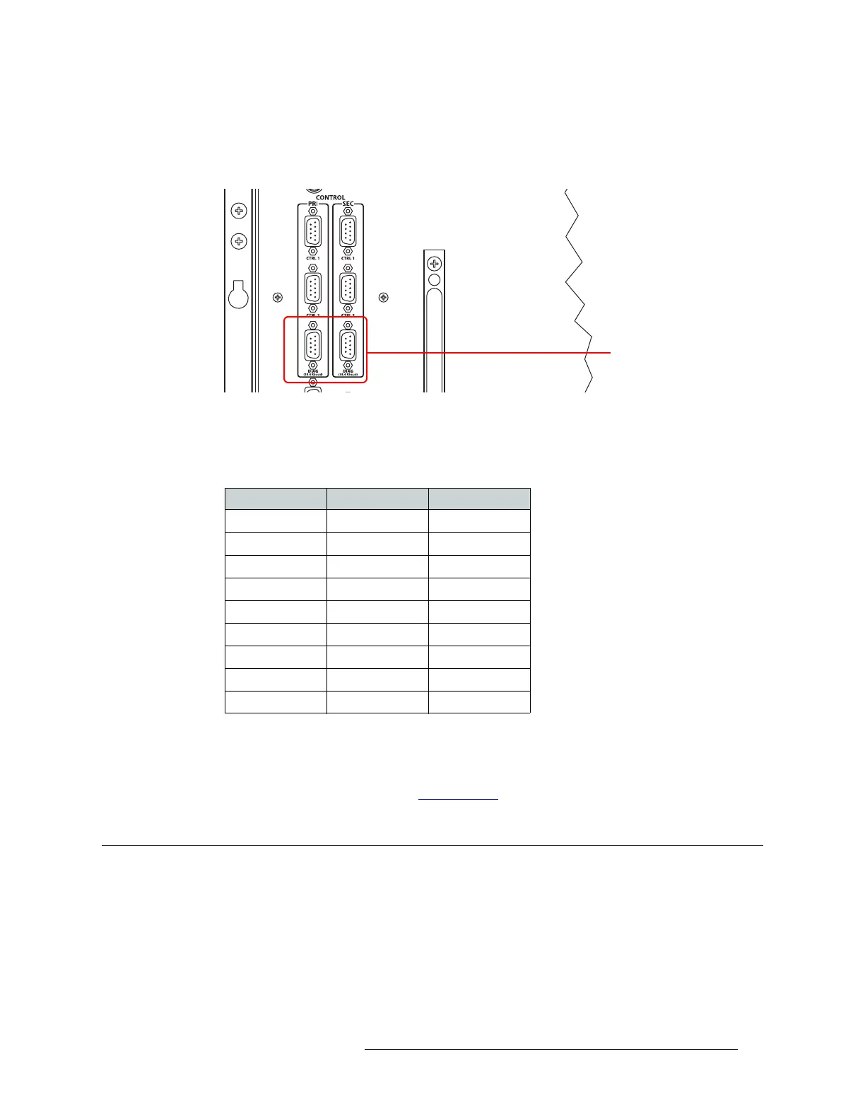 2 Connect to the ‘DIAG’ connection in the ‘PRI’ section using a DE9 connector and a serial