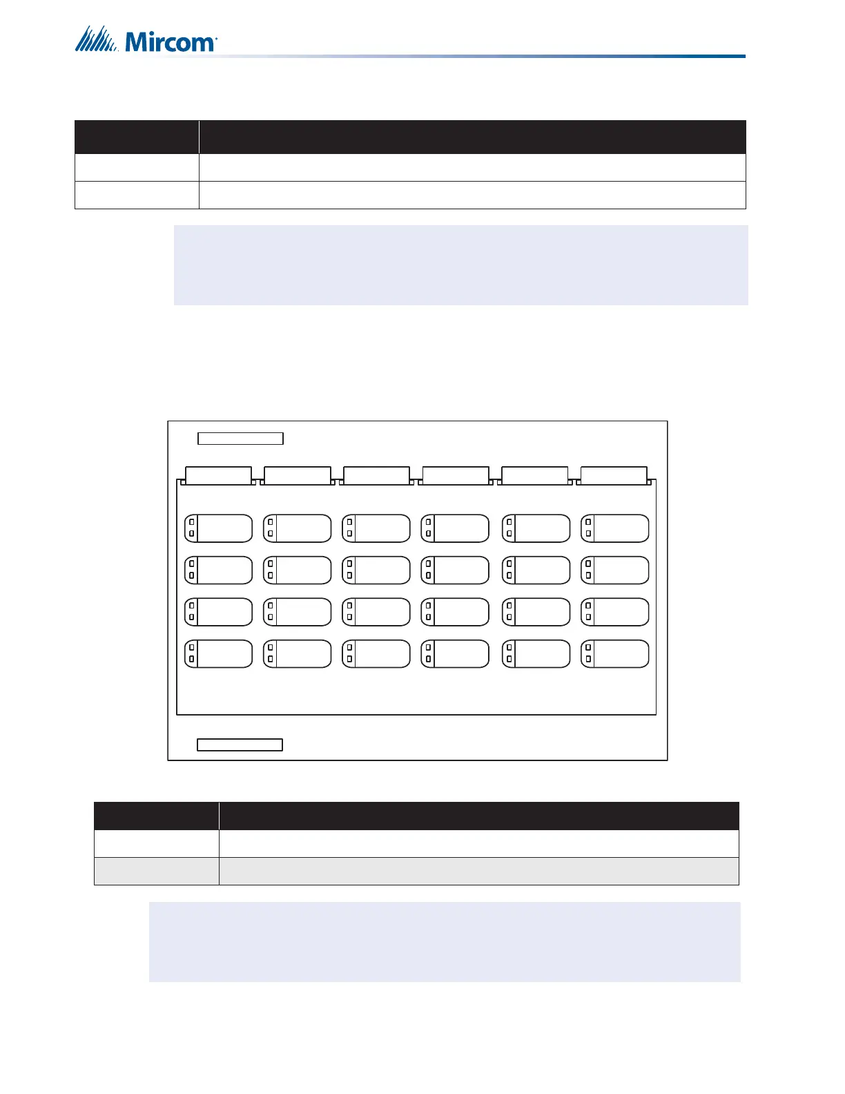 24 bi-coloured (red/amber) LEDs for fire alarm zone annunciation and 24 amber trouble LEDs