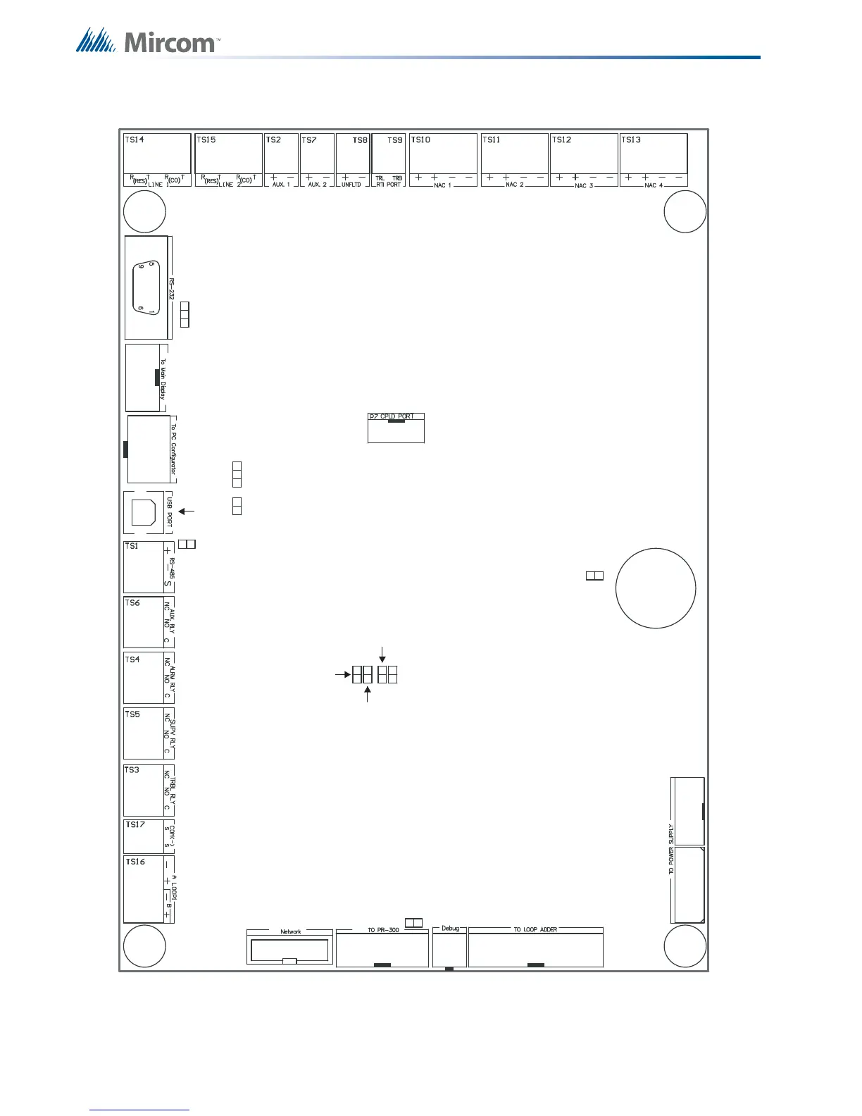 Mircom FX-3500 - Figure 4 Port and Jumper Locations on Main Board