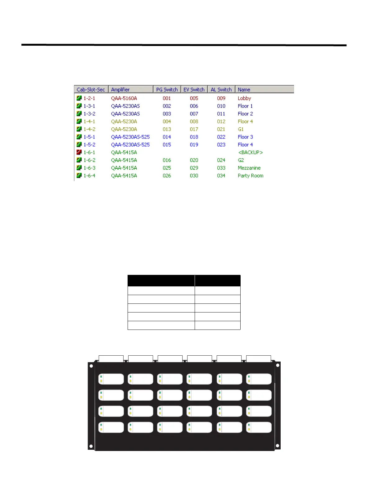 • The third, fourth and fifth columns show the Paging, Evacuation and Alert Switch numbers assigned for that