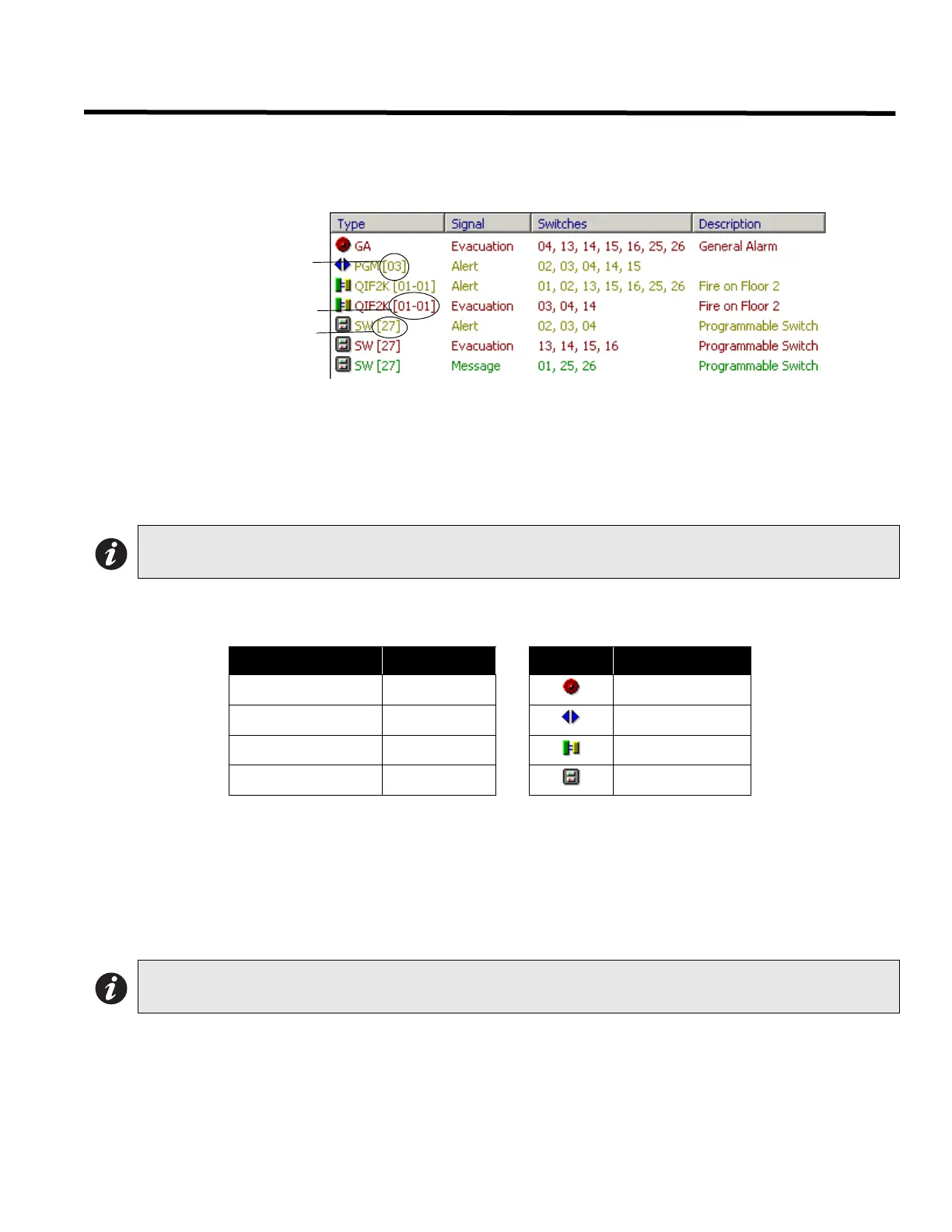 Note: The switches column indicates the paging switch numbers that you designate to the listed input when