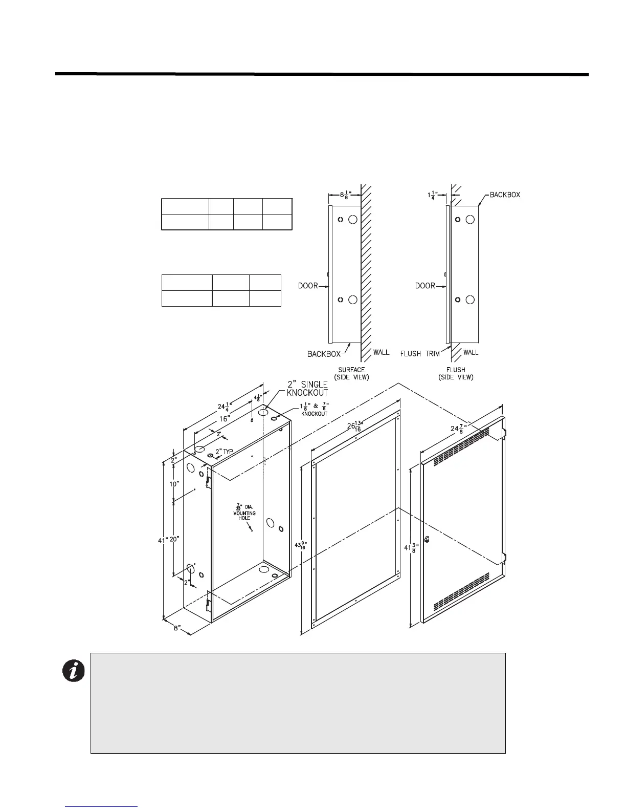 Audio cabinets are mounted as shown in Figure 4 below. The QBB-5001 is the backbox and door. The QBB-
