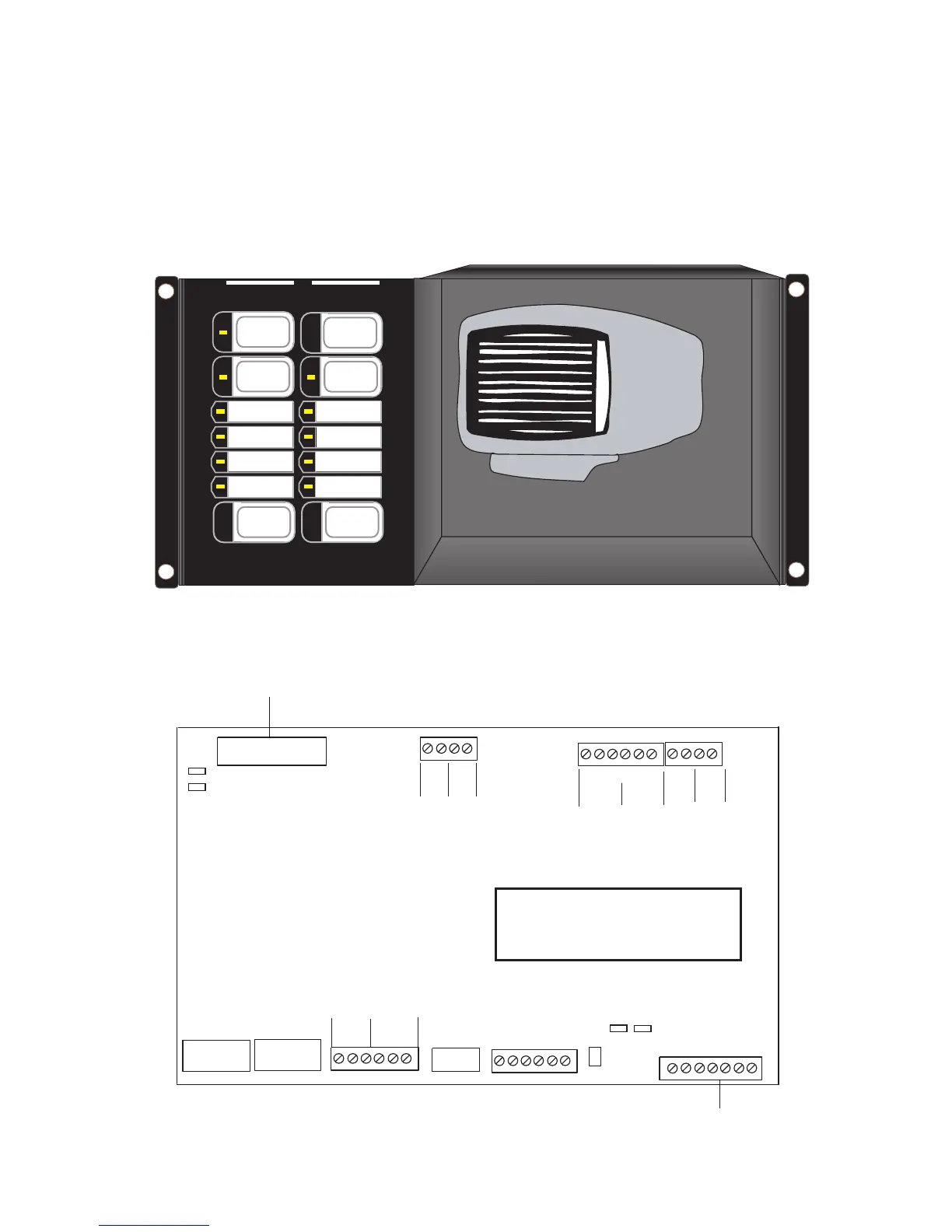 The QMP-5101B Master Paging Module connects via a ribbon cable to the first QZP-5101 Zone Module. It also has