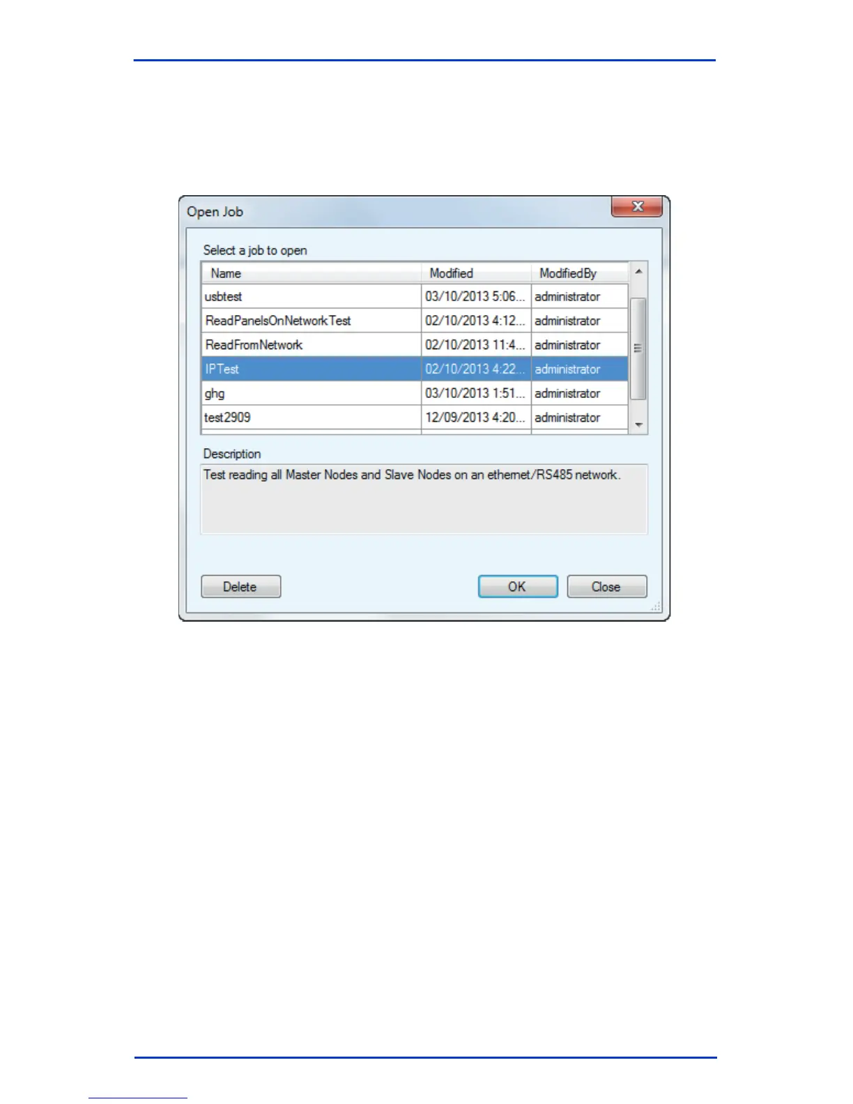 2. Select a job and click OK, or click Close to exit without saving the